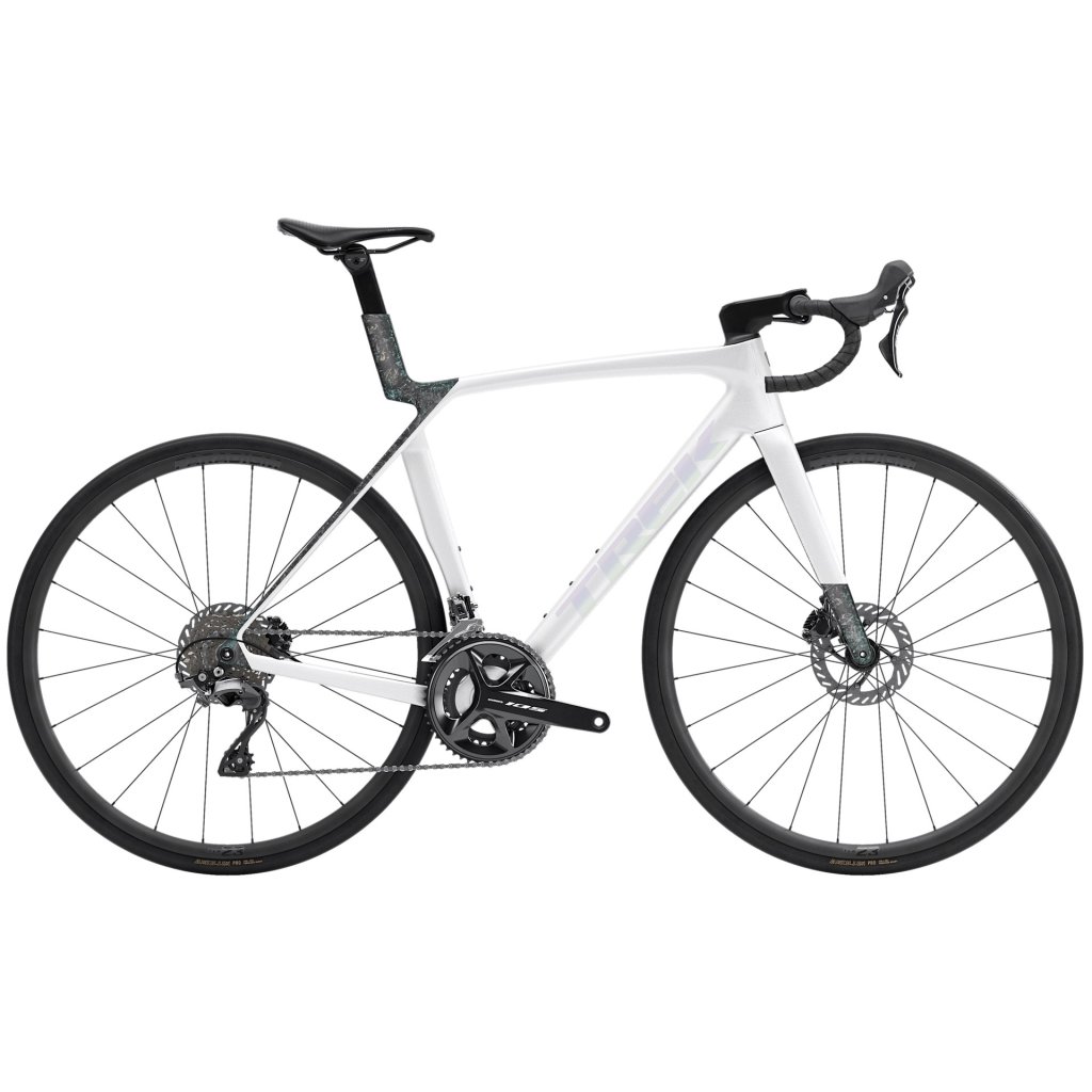 Madone SL 5 Gen 8 je lehké aerodynamické silniční kolo, které přináší profesionální závodní technologii do nižší cenové kategorie. Nabízí podobnou aerodynamiku jako dražší Madone SLR Gen 8, ale s dostupnějším laminovaným karbonovým rámem řady OCLV 500 a dvoudílným kokpitem se skrytým vedením kabelů. Spolehlivé a přesné řazení Shimano 105, stejně jako hliníková řídítka a litá kola pomáhají udržet cenu na co nejnižší úrovni a zároveň zajistit špičkový výkon.