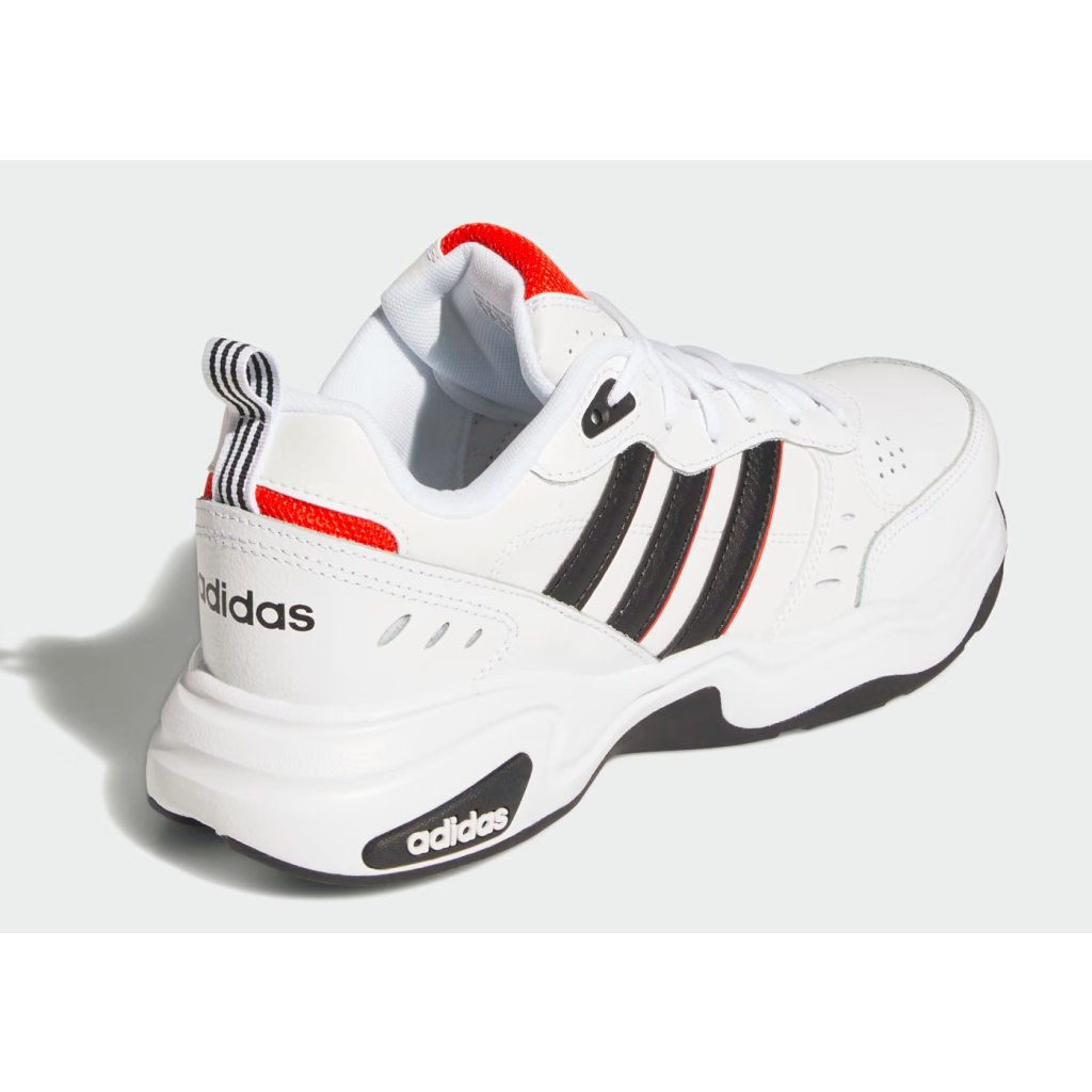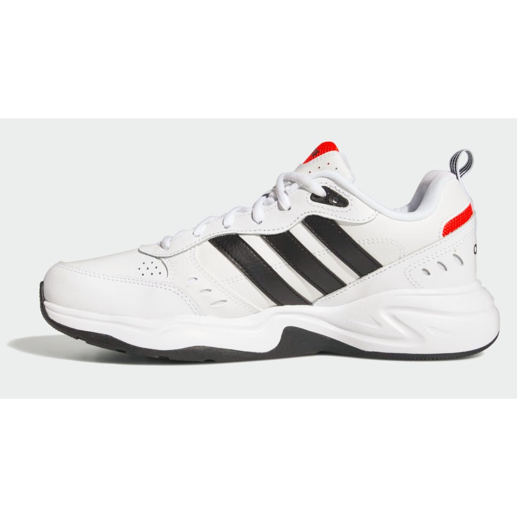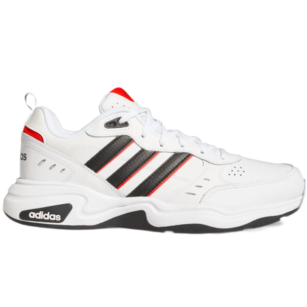 Robustní tenisky mužů Adidas Stutter M pro všechny pohodlí. Jejich kožený svršek je zdoben vyřezávanými detaily, vrstvami a nbsp; charakteristika 3 & nbsp; proužky. Jsou přenášeny na vysokoprofilové ve tvaru mezipodešev A & nbsp; dokončí lepicí podešvu.