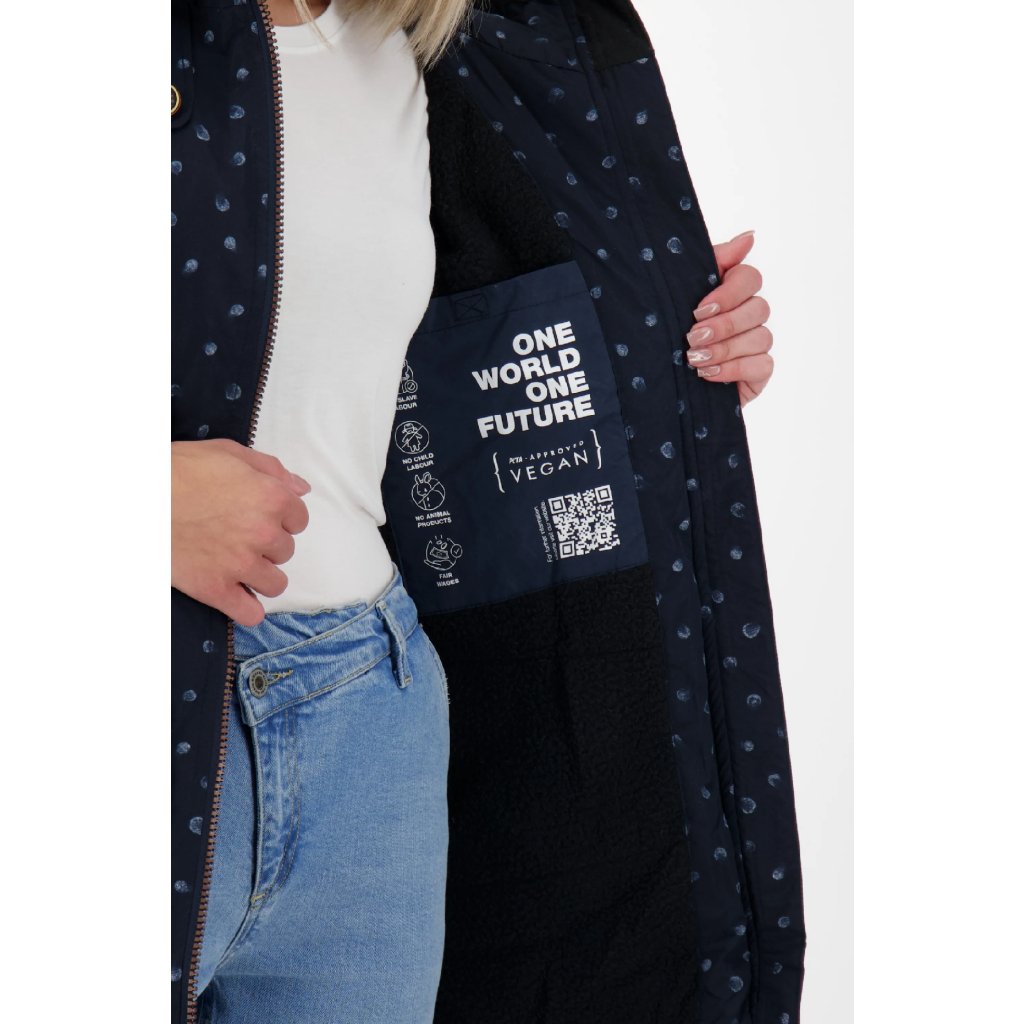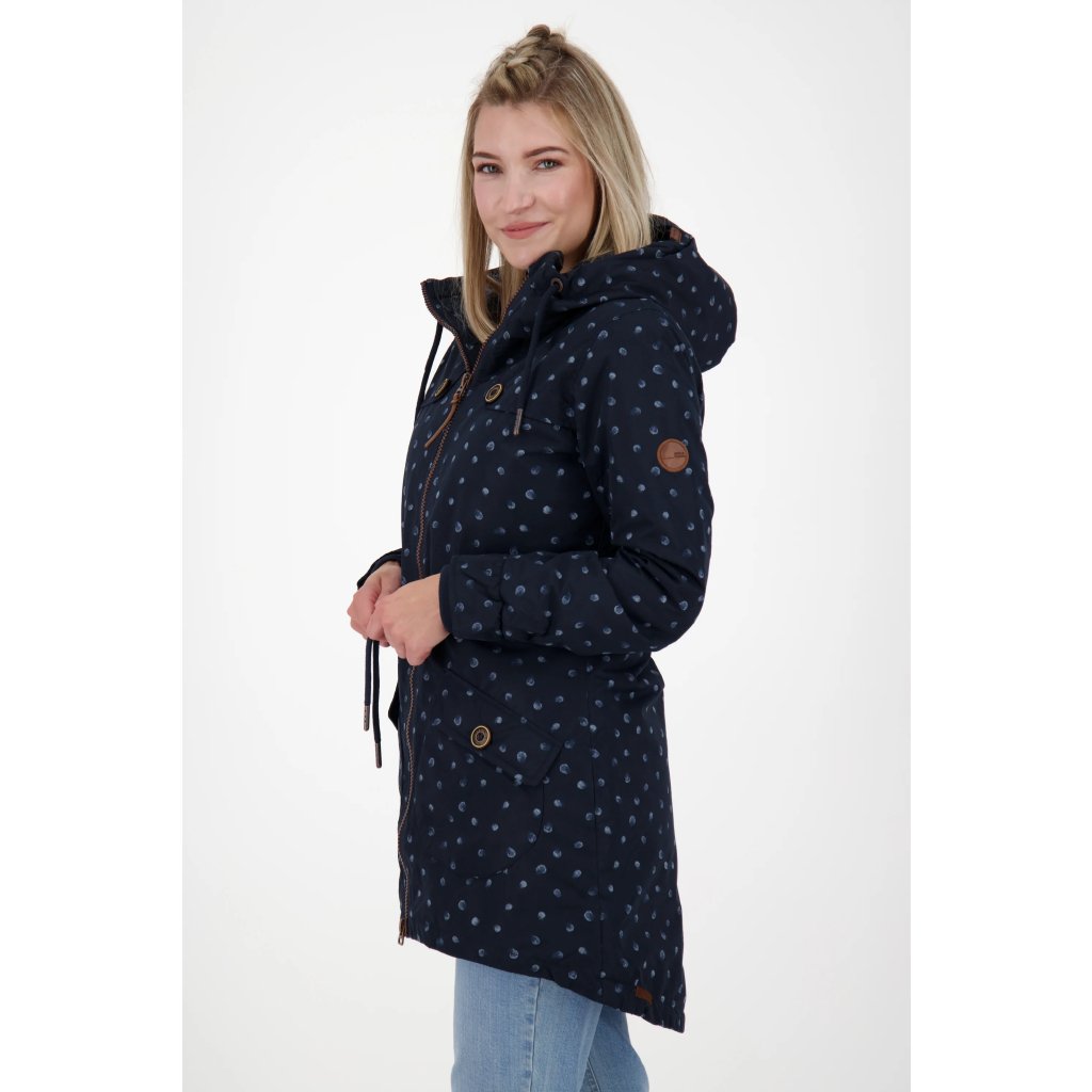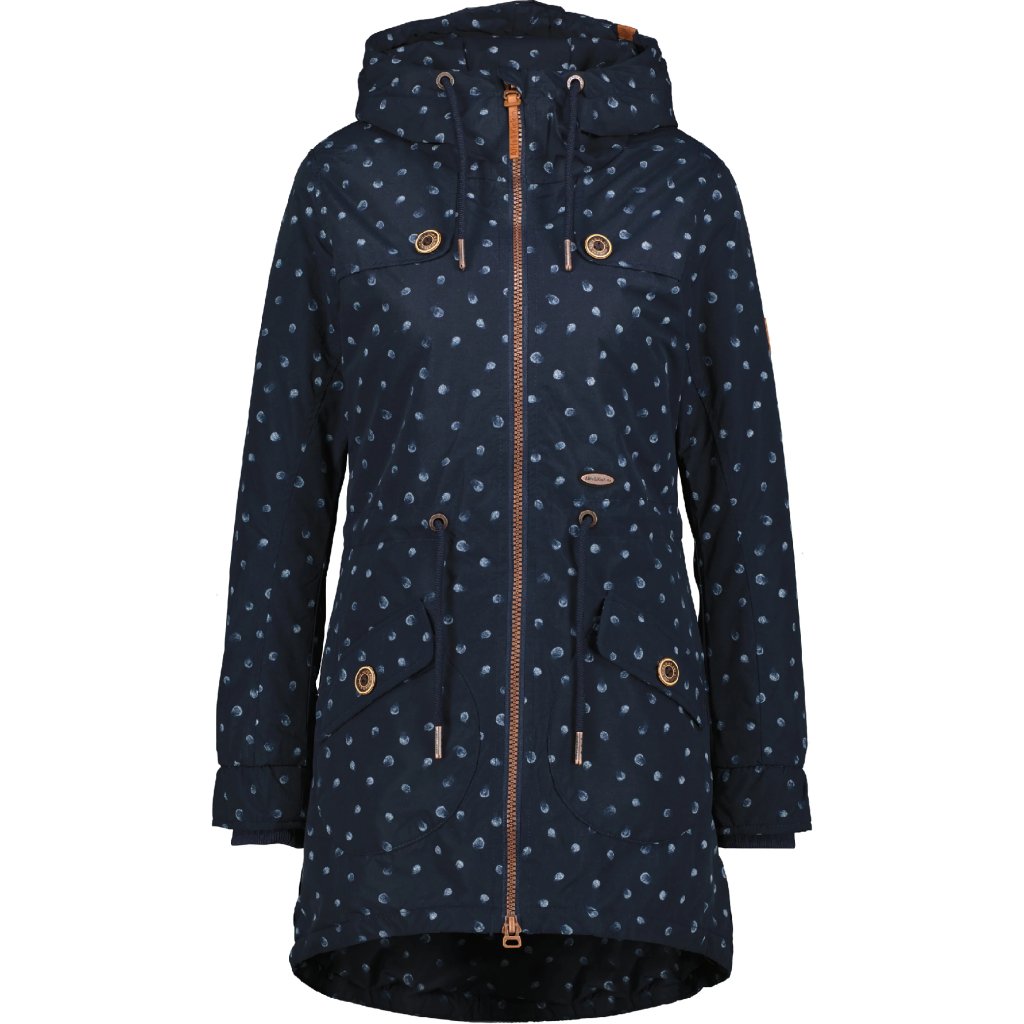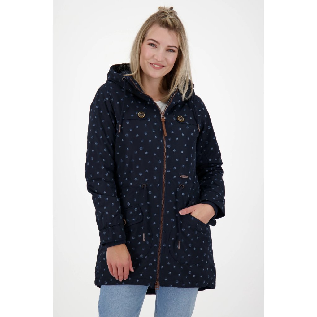 Skvělá pozornost na zimu a zároveň naprosto univerzální - nová dámská zimní bunda CharlotteAK B od Alife and Kickin je docela výrazná! Ať už jste venku, nebo ve městě – s touto zimní bundou pro ženy bude váš styl vždy dokonalý. Dlouhá dámská bunda s teplou podšívkou ve stylu parky zaujme svým obepínajícím střihem s nastavitelnou šňůrkou v pase a barevně kontrastními detaily značky, jako jsou ozdobné knoflíky dřevěného vzhledu s nápisy Alife a Kickin. Dvě kulaté kapsy uzavíratelné na suchý zip zdobí přední stranu vzorované dámské bundy a poskytují dostatek prostoru pro klíče, mobilní telefon atp. Ve větru a v nepříznivém počasí se o maximální pohodlí postarají elastické manžety, příjemná podšívka z plyšového flísu a nastavitelná kapuce se stahovací šňůrkou. Dejte volný průběh svým preferencím - univerzální zimní park CharlotteAK B značky Alife and Kickin je vždy na začátku.
