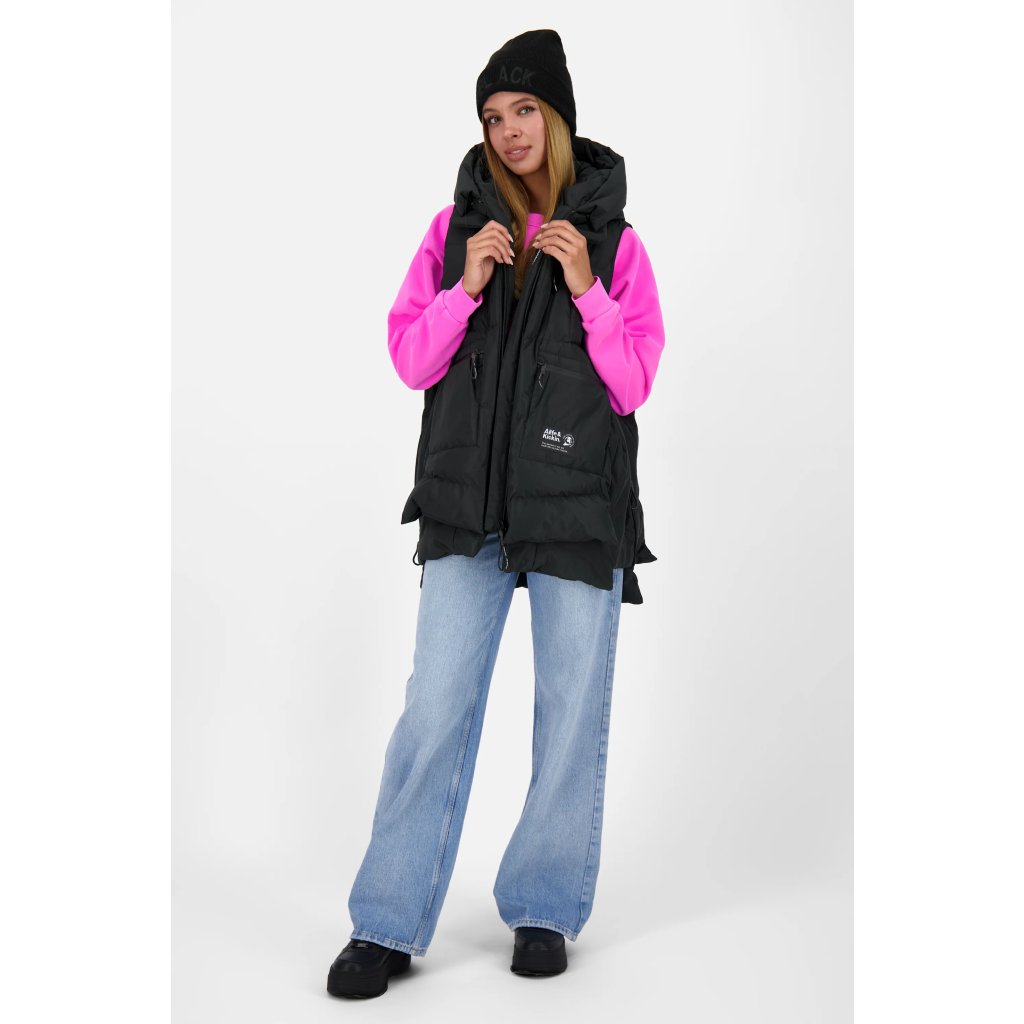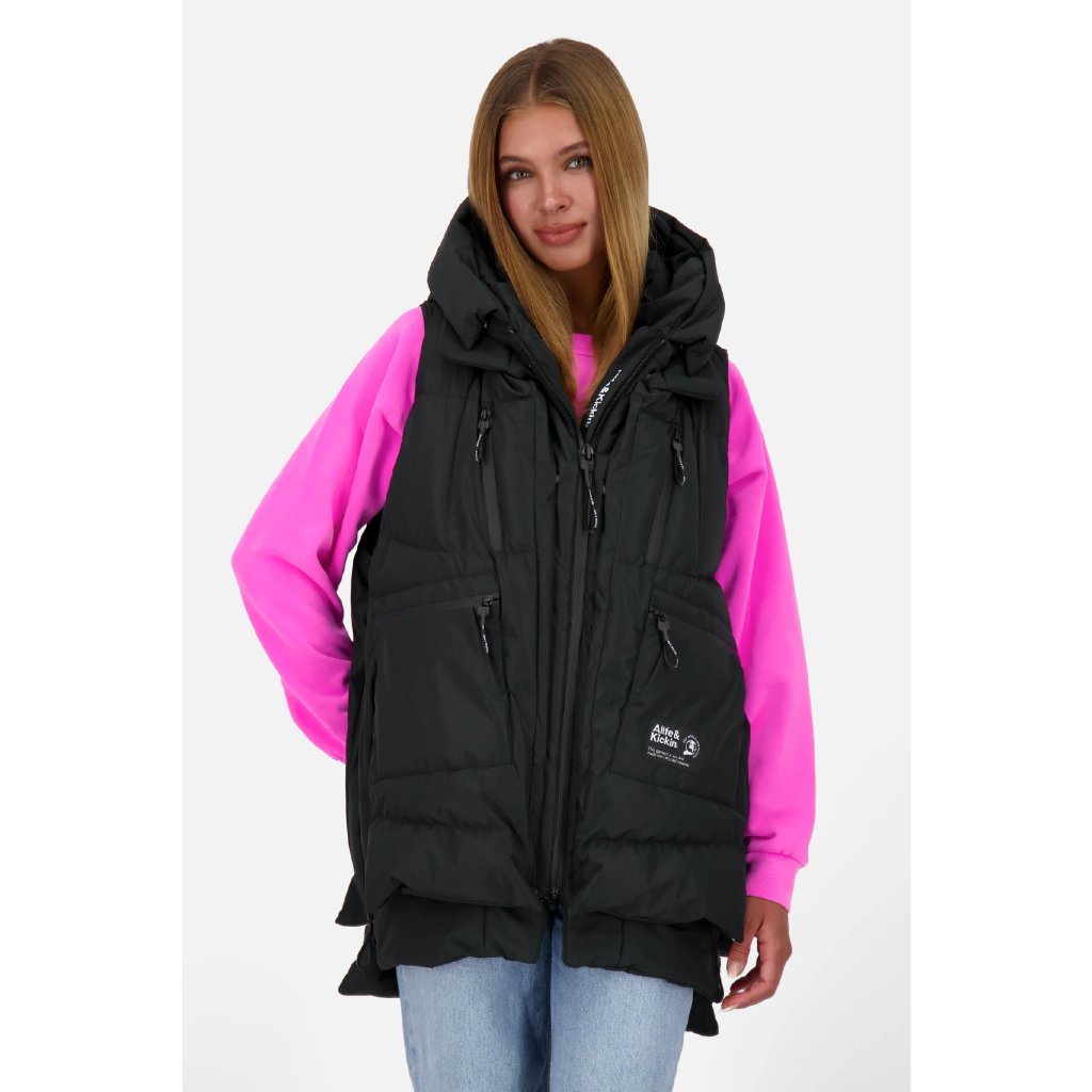 Kratší dámská vesta s kapucí a zipem. Má několik kapes. Je kvalitní a vyrobená z příjemného materiálu. Její hřejivá podšívka vám poskytne dostatečný komfort i během chladnějších dnů.