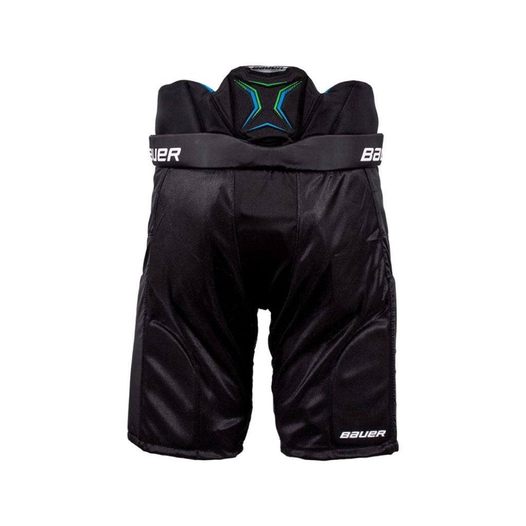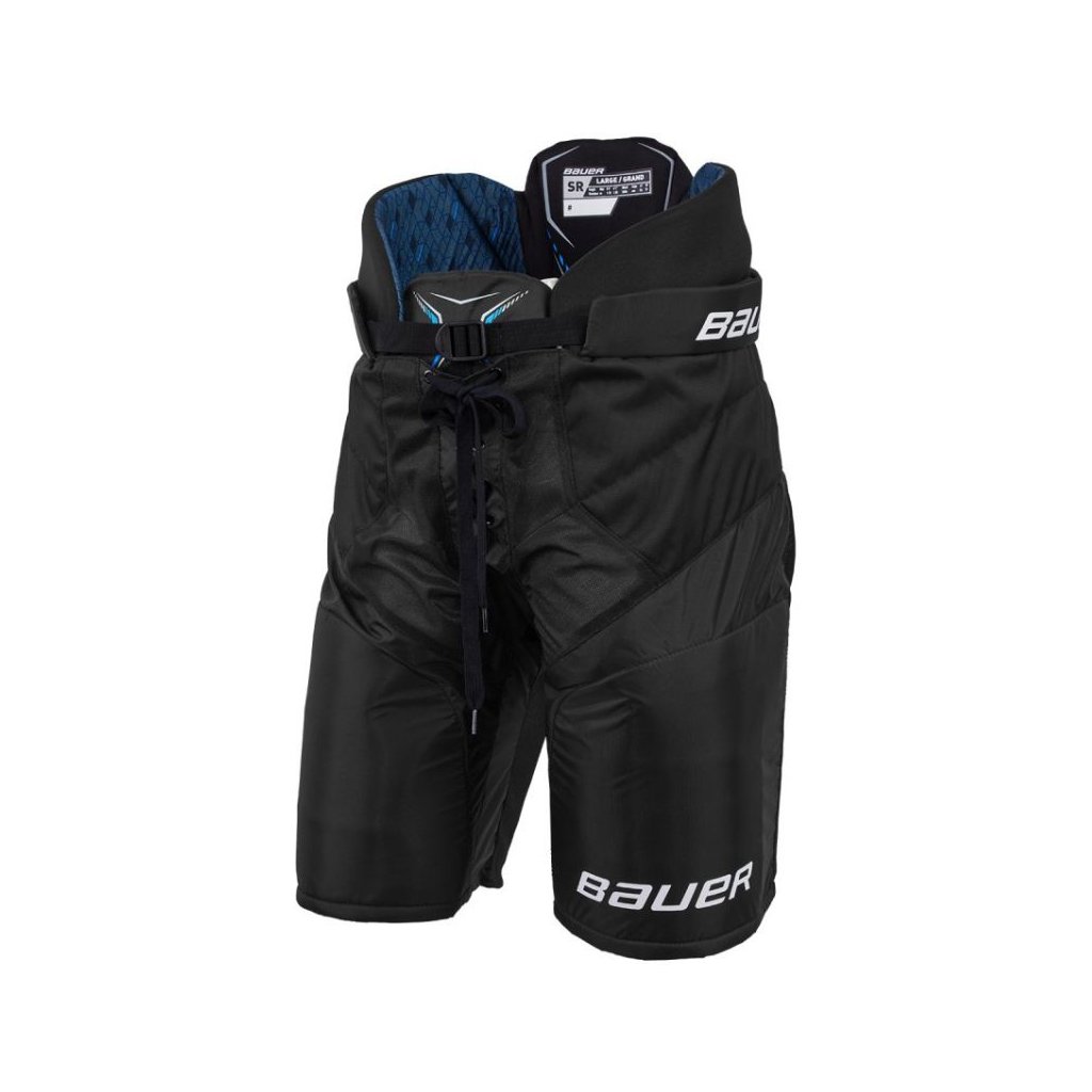 Hokejové kalhoty Bauer X SR jsou navrženy pro amatérské hokejisty. Hlavními výhodami jsou střih, pohodlí a vzhled, které žádný jiný konkurent v této cenové kategorii nepoužívá. Vnější strana je z odolného nylonového pláště 420D, který výborně odolává opotřebení. Skořepina má také napínací zónu podél oblasti rozkroku, aby se zlepšila flexibilita a pohyblivost v kalhotách. Ochrana stehen kalhot Bauer X sestává z pěny o vysoké hustotě s vložkami z tvarovaného PE (polyethylenu). Mají anatomický tvar a hezky obepínají nohu, čímž působí nízkým profilem. Díky tomu se vložka může pohybovat s vaším tělem a zabránit otáčení kalhot při kontaktu.