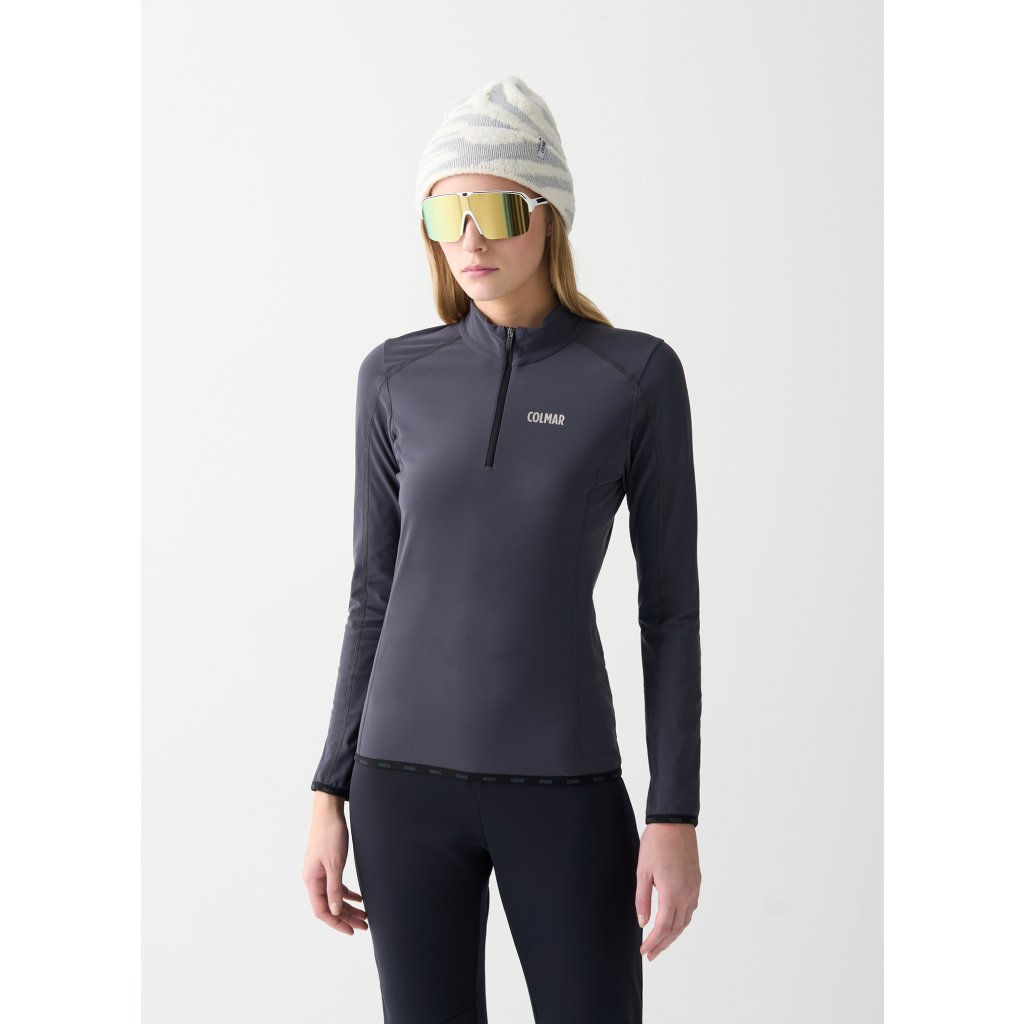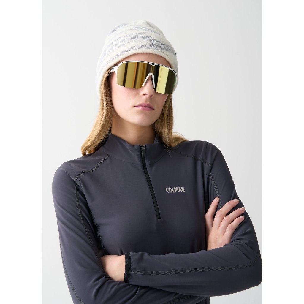 Toto zateplené lyžařské tričko s polovičním zipem je prodyšné a pohodlné a je vyrobeno z elastické tkaniny s lehkým fleecem na vnitřní straně a vynikající odolností proti oděru. Technické a funkční oblečení, ideální pro každodenní horské aktivity a zároveň praktické.