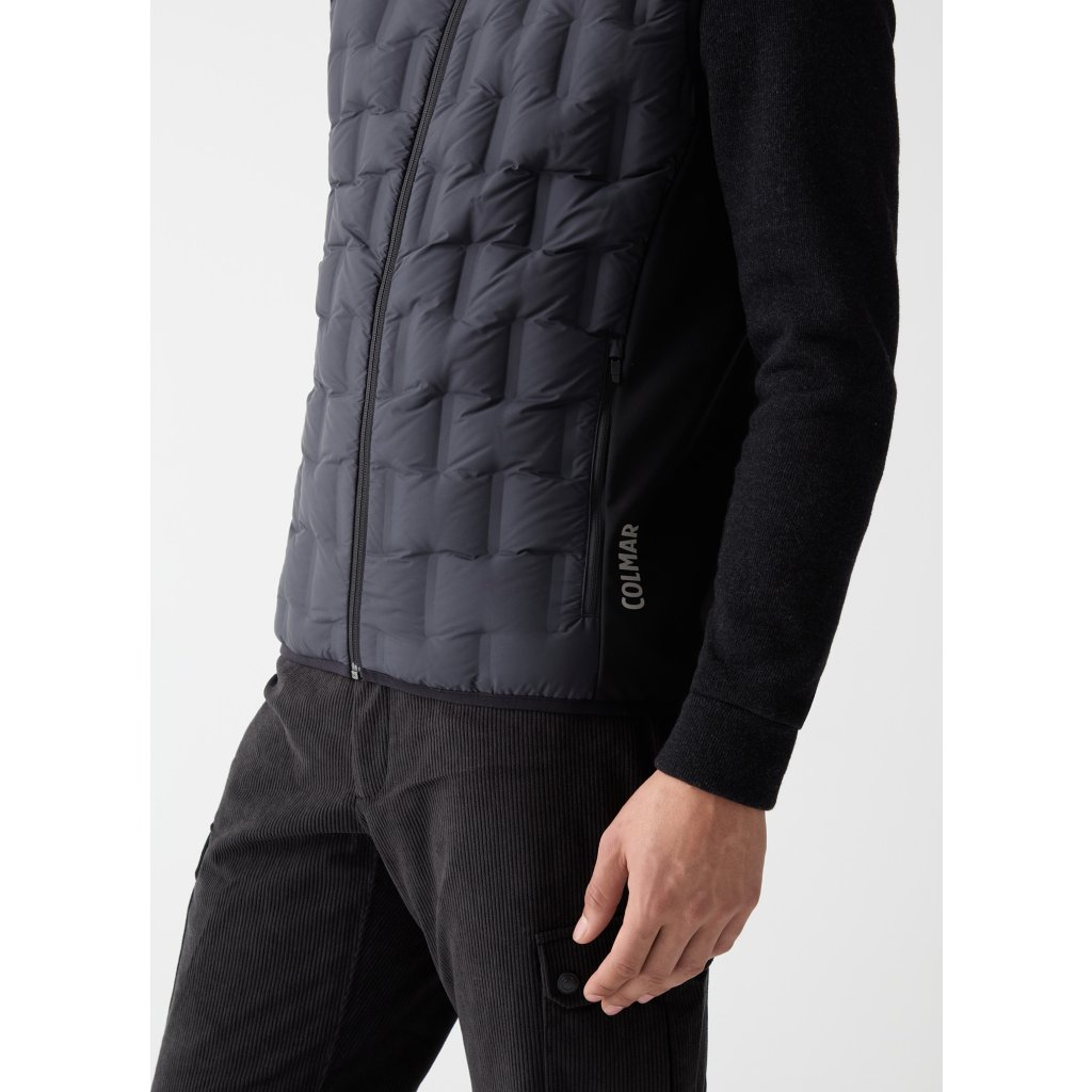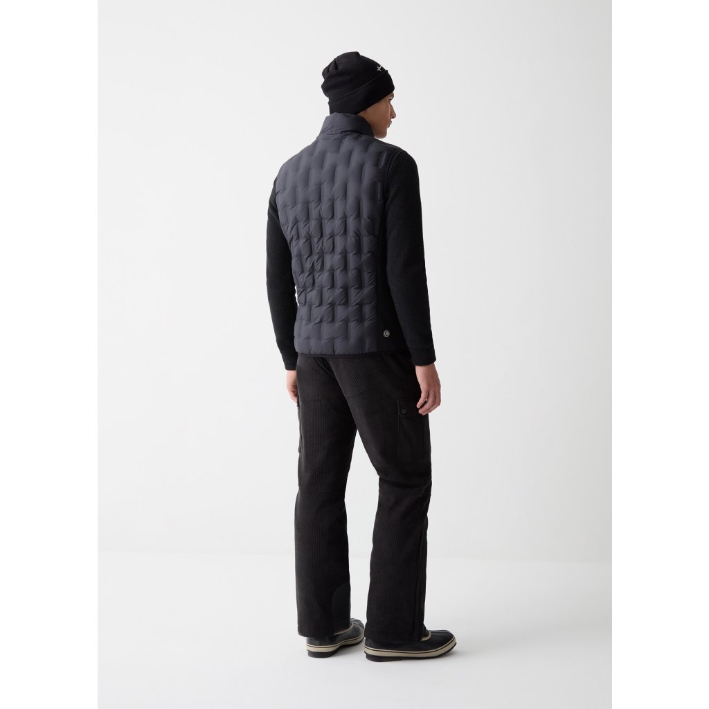 Tato vesta, navržená jako extrémně všestranný oděv, vyniká svou bezešvou, lepenou trubkovou konstrukcí bez švů nebo prošívání, která vytváří rafinovaný geometrický vzor. Boky jsou vyrobeny z elastického, voděodolného a prodyšného softshellu, který zaručuje volnost pohybu a pohodlí při jakékoliv aktivitě. Díky výplni z měkkého přírodního prachového peří je ideální jako izolace pod svrchní oblečení při lyžování, ale také jako samostatná vrstva do města nebo v mírně chladných dnech venku.