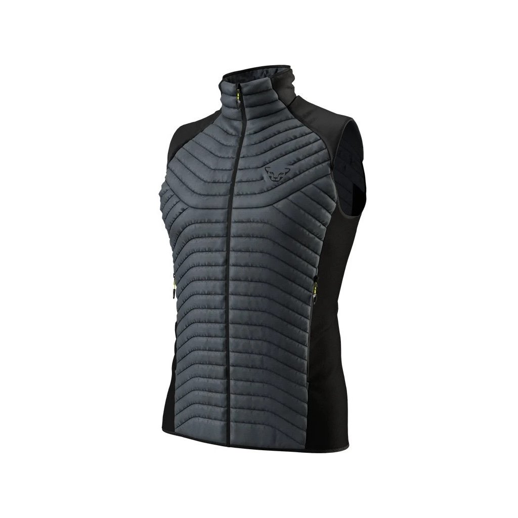 Pánská všestranná zateplená vesta Dynafit Speed Insulation Vest vyrobená ze 100% recyklované syntetické výplně. Zateplená vesta poskytuje ideální tepelný komfort, když je příliš chladno na triko s dlouhým rukávem, ale stále velmi hřejivé na bundu. Vypadá jako z recyklovaného syntetického materiálu 10% (polyester) připomínající prachové peří. Výhodou syntetické izolace je, že je mnohem jednodušší na péči než klasické prachové peří a je méně náchylná na vlhkost. Perfektně izoluje, i když je mokrý, je hypoalergenní a lze ho hodit do pračky. Vesta má navíc větru a vodě odolnou úpravu, díky čemuž je vhodná pro širokou škálu použití. Její boční strečové fleecové panely umožňují, aby se vesta dokonale přizpůsobila vašemu tělu. Látka navíc skvěle odvádí přebytečnou vlhkost od těla, takže zůstanete v suchu i při náročných výstupech. Má dvě kapsy na zip pro uložení malých nezbytností.