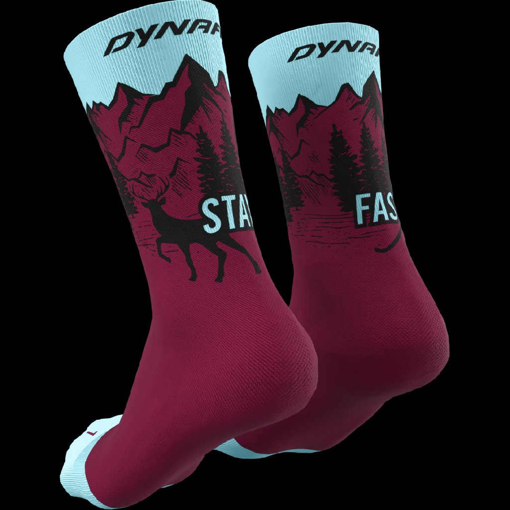 Ponožky "Stay Fast" vynikají svým pohodlím a stylem. Jsou vhodné pro turistiku nebo trailový běh. Tyto ponožky s moderním grafickým designem a pleteným mottem DYNAFIT "Stay Fast" vám dodají extra dávku motivace na cestě na vrchol. Ponožky poskytují vynikající odvod vlhkosti pro udržení dobré termoregulace chodidla. Vaše pokožka zůstane suchá i během intenzivních výstupů. Díky bezešvé konstrukci ponožky účinně zabraňují tvorbě puchýřů.