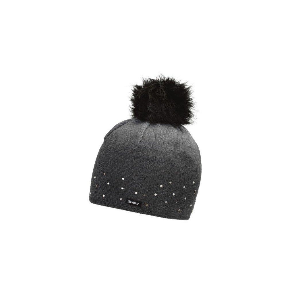 Teplá pletená čepice Eisbär s ozdobnými kamínky, bambulí z umělé kožešiny a prodyšnou podšívkou z fleecu.