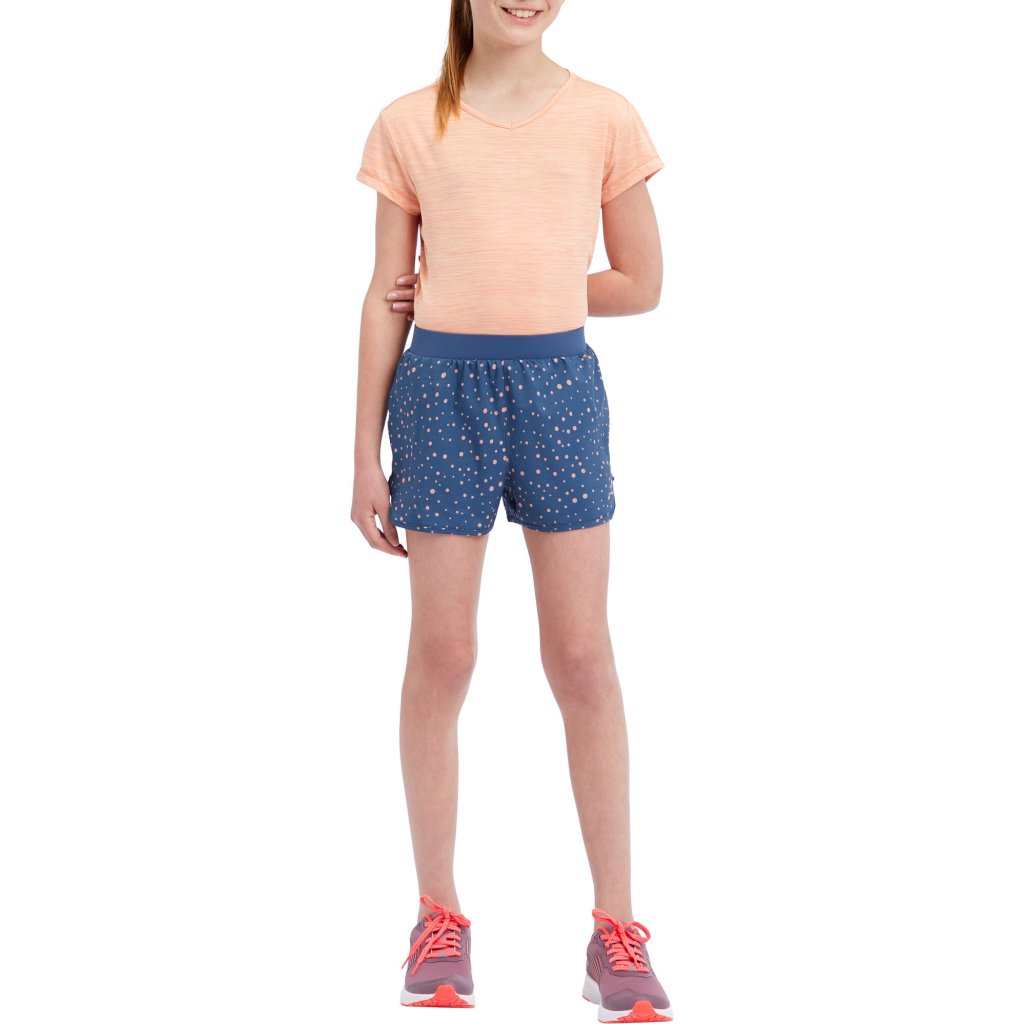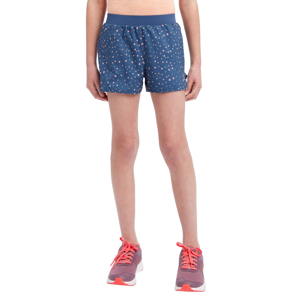Dívčí moderní 2 v 1 šortky Energetics Bamas 4 Shorts Kids mají vše, co potřebujete, abyste se při cvičení cítili opravdu pohodlně. Funkční tkanina DRY PLUS ECO regulující klima rychle odvádí vlhkost ven a udržuje vaše tělo svěží a suché. Přiléhavé vnitřní elastické šortky a elastický pas zajišťují dokonalé přizpůsobení, zatímco barevný design dává speciální akcenty.