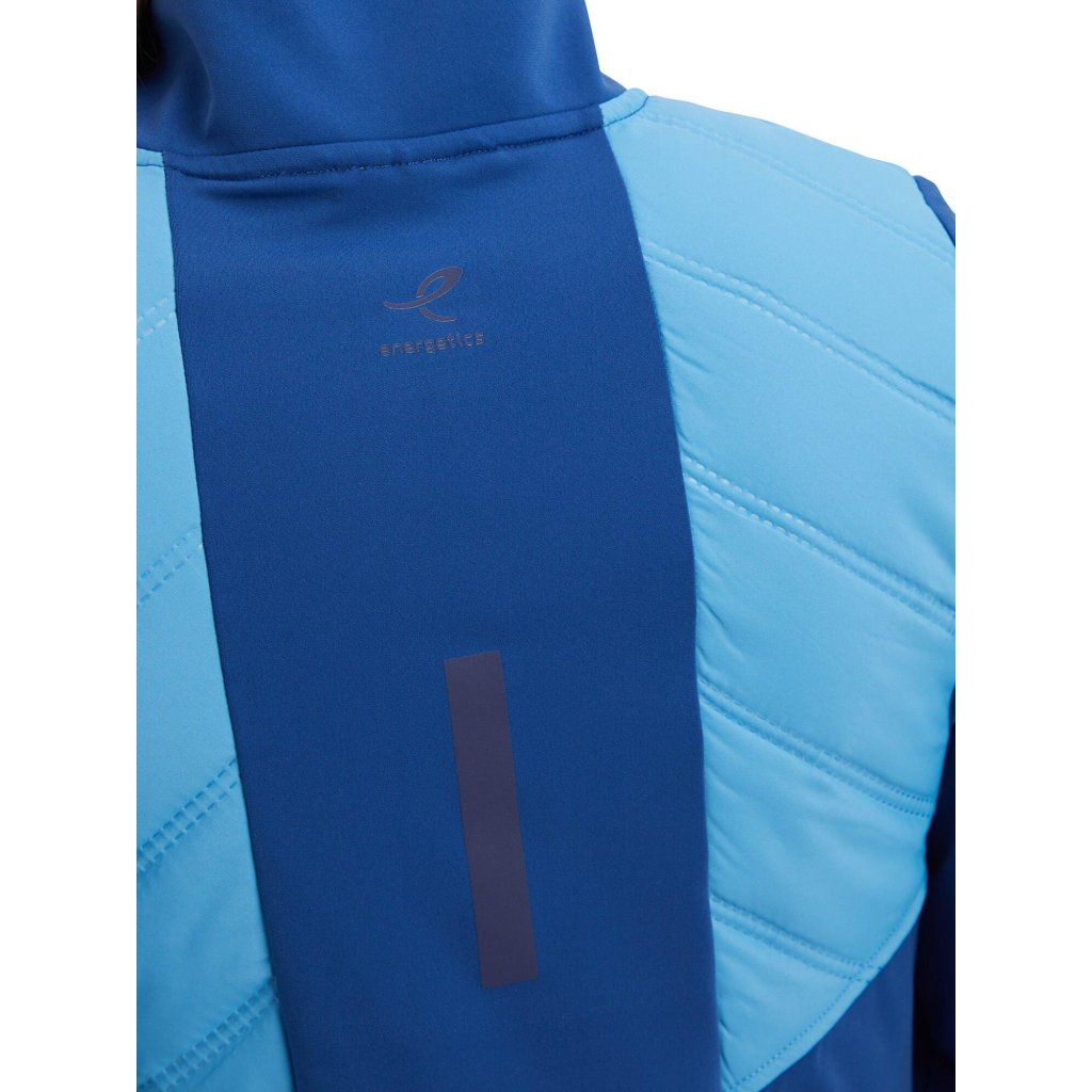 Dámská běžecká bunda Energetics Baya V s celorozepínacím zipem vyrobená ze 100% recyklovaného polyesteru má vysoký límec s chráničem brady a manžetami na palec, jakož i technologii DRY PolyesterUS® využívá vysoce účinného odvodu vlhkosti, aby vaše tělo zůstalo suché a pohodlné.