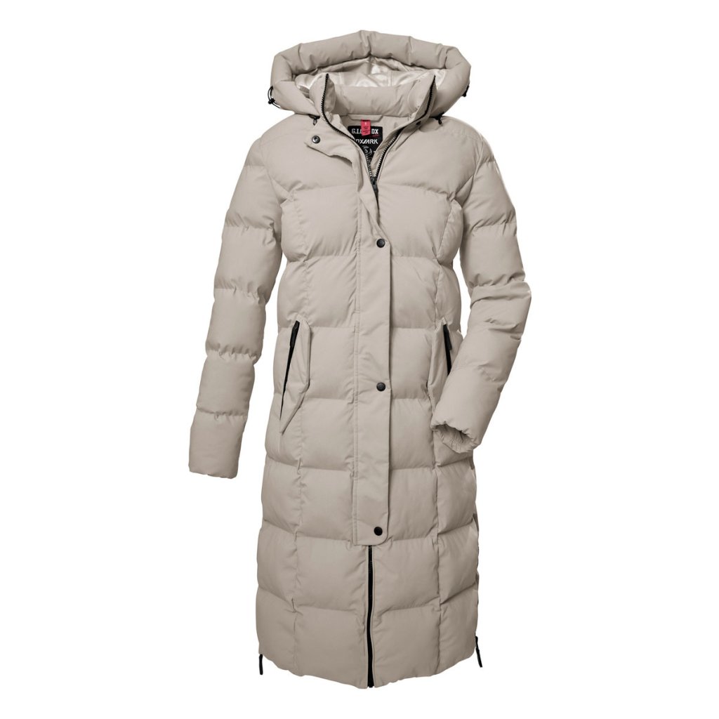 Dámský funkční prošívaný kabát G.I.G.A. DX GW 2 QLTD CT W péřového vzhledu s nastavitelnou kapucí. S dámským prošívaným kabátem v nadčasovém městském stylu od G.I.G.A. kolekce DX Protection, zima může přijít. Je větruodolný a vodoodpudivý s vodním sloupcem 10 000 mm. Zároveň je prodyšný s paropropustností 5000 g/m²/24 hodin. 2cestný zip a dva boční zipy slibují dostatek svobody pohybu. Kapuce je individuálně nastavitelná. Dvě uzamykatelné kapsy na ruce a vnitřní kapsa nabízejí úložný prostor pro mobilní telefony, klíče atp. Killtec se obzvlášť zajímá o to, aby byly kolekce udržitelnější a odolnější vůči budoucnosti. Killtec se stále více spoléhá na zodpovědnější výrobní procesy. Tento zimní kabát je proto impregnován prostředky bez fluoru a je částečně vyroben z recyklovaného materiálu.