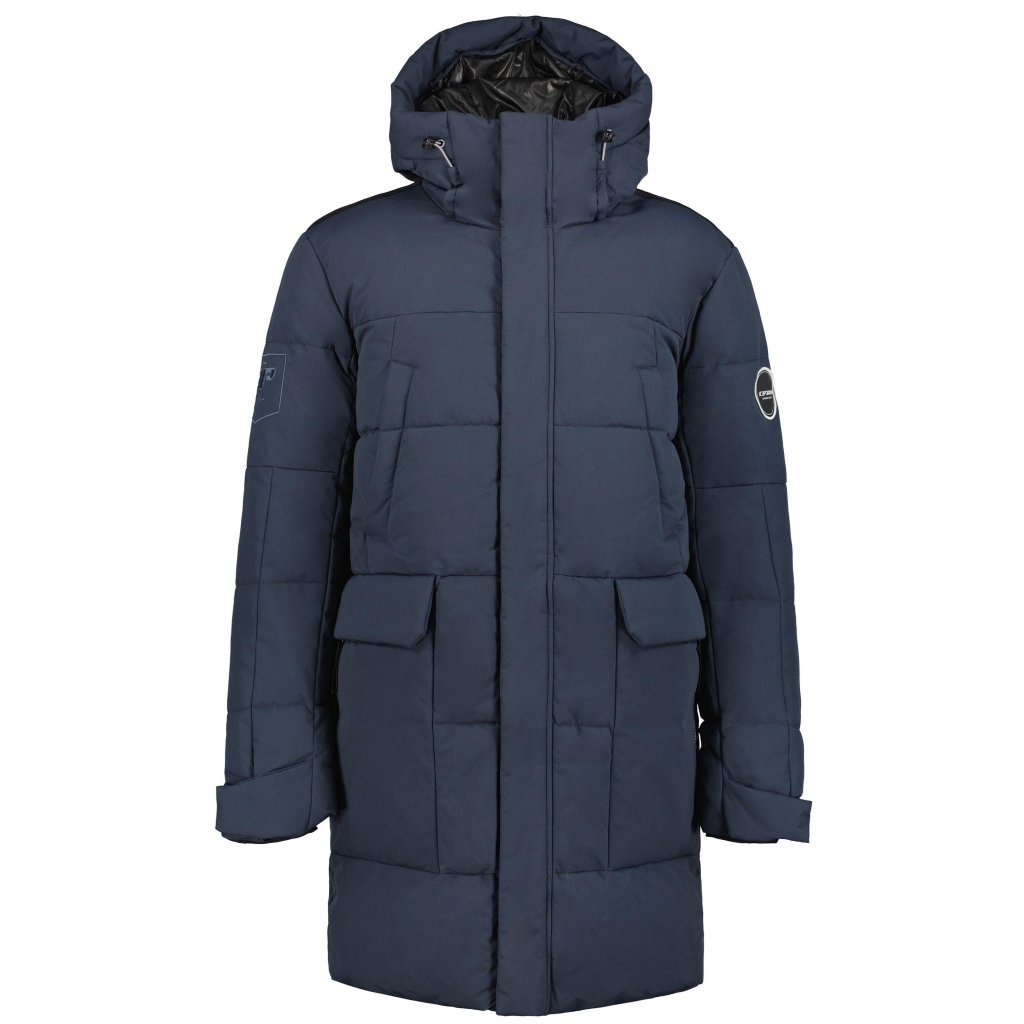 Pánská dlouhá, teplá a volná bunda Icepeak Algood Jacket M je perfektní pro nošení v městských zimních podmínkách. Je vyrobena z větru a voděodolné látky, která spolu s teplou izolací zajišťuje, že vám nebude zima při čekání na autobus nebo při procházce po centru města. Bunda má spodní kapsy na zip a náprsní kapsy s chlopní. Nastavitelné manžety obsahují strečové vnitřní manžety, které chrání před chladným zimním vzduchem. Střih lze upravit v pase a na lemu.