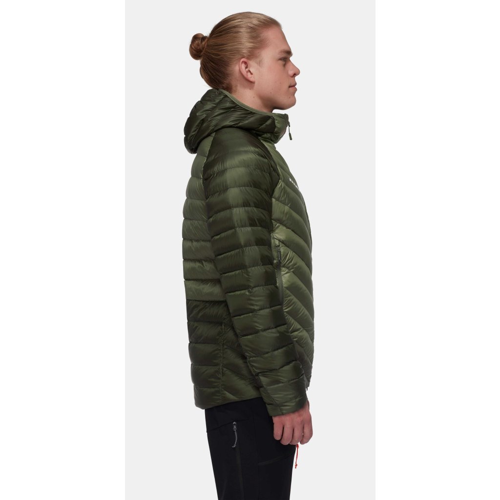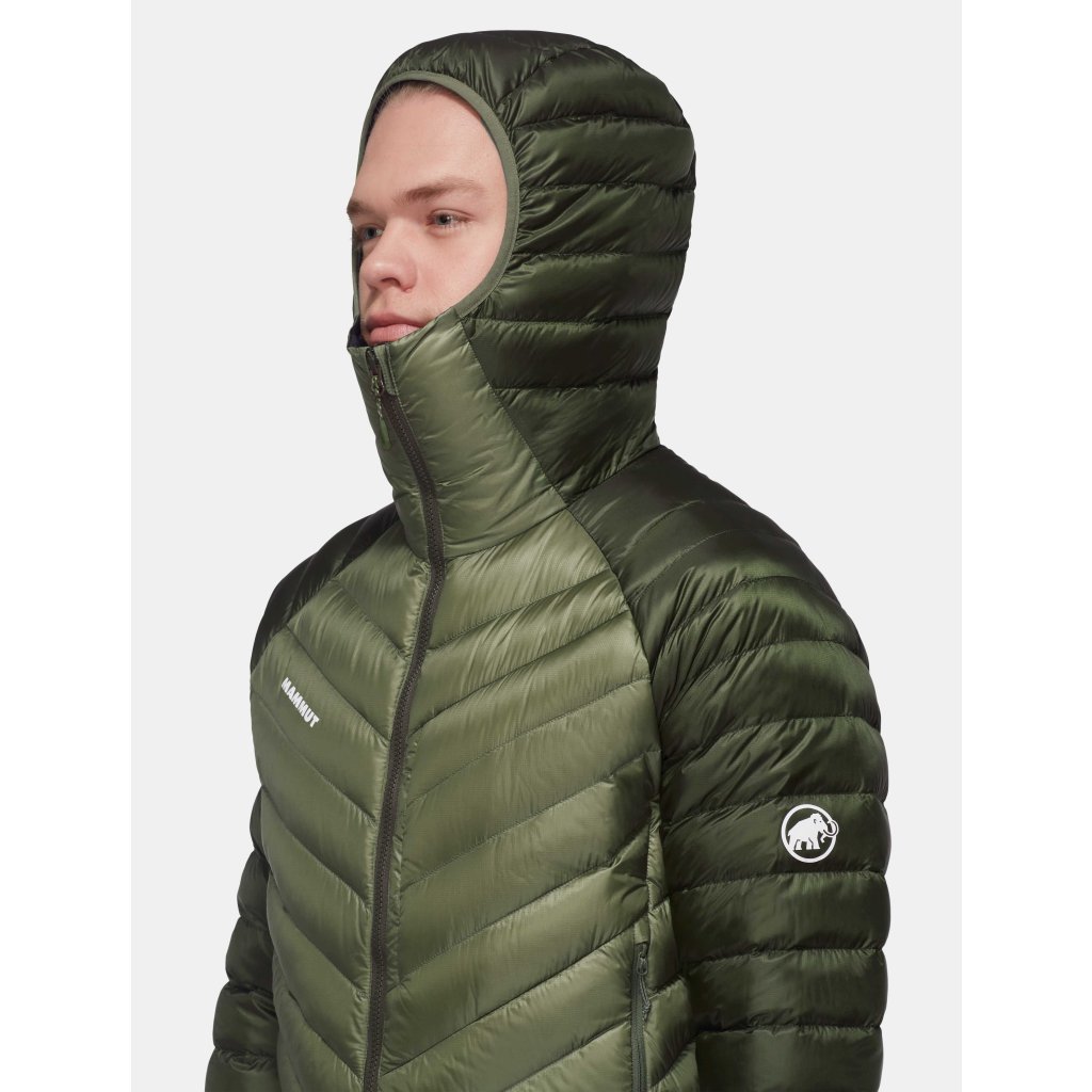 Pánská funkční péřová bunda Mammut Broad Peak IN Hooded Jacket na horská dobrodružství. Po nesčetných kilometrech ve vysokohorských podmínkách si bunda s kapucí Broad Peak IN vydobyla své místo mezi našimi nezbytnými modely. Poskytuje spolehlivé teplo s plnícím výkonem 800 cuin vyrobeným z zodpovědně vyráběného hydrofobního prachového peří, které izoluje i ve vlhkých podmínkách.