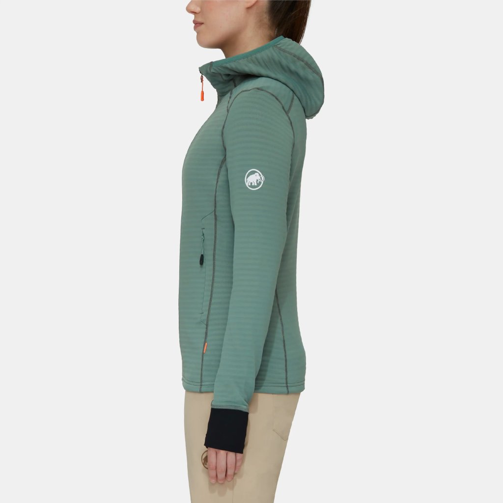 Mammut Taiss Light ML Hooded Jacket dámská mikina s kapucí vhodná na nošení kdykoli během roku je ideální pro všechny druhy outdoorových aktivit. Středně pevný 4-směrně strečový fleece s vysokým obsahem nylonu a tvarovaným střihem poskytuje vol...
