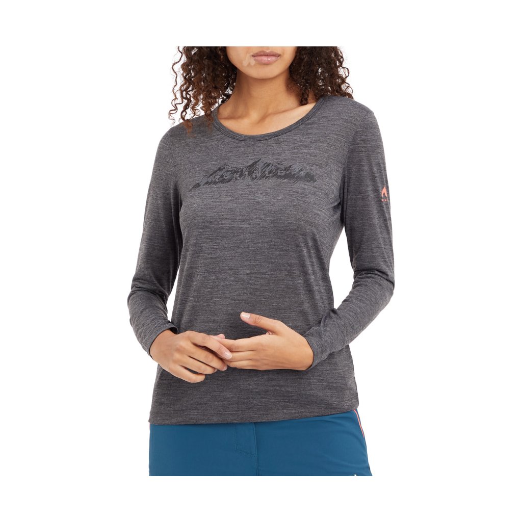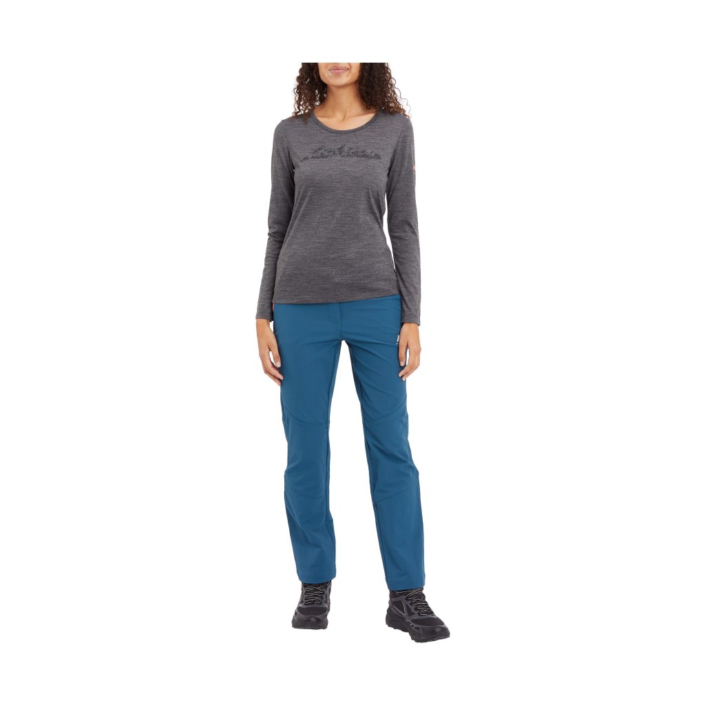 Tričko s dlouhými rukávy a kulatým výstřihem je velmi pružné s 50% merino vlny a odvádí pot od těla, čímž zajišťuje příjemný pocit.
