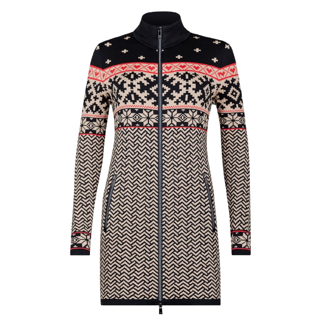 Dámská funkční tunika Newland Lavanda Full Zip Tunic W vyrobená z materiálu DHtech 400, který nabízí teplo, prodyšnost, termoregulační izolaci a vysoký výkon, sofistikovaná norská žakárová. s jakýmkoli typem legín, kalhot nebo strečových džínsů pro výjimečný vzhled.