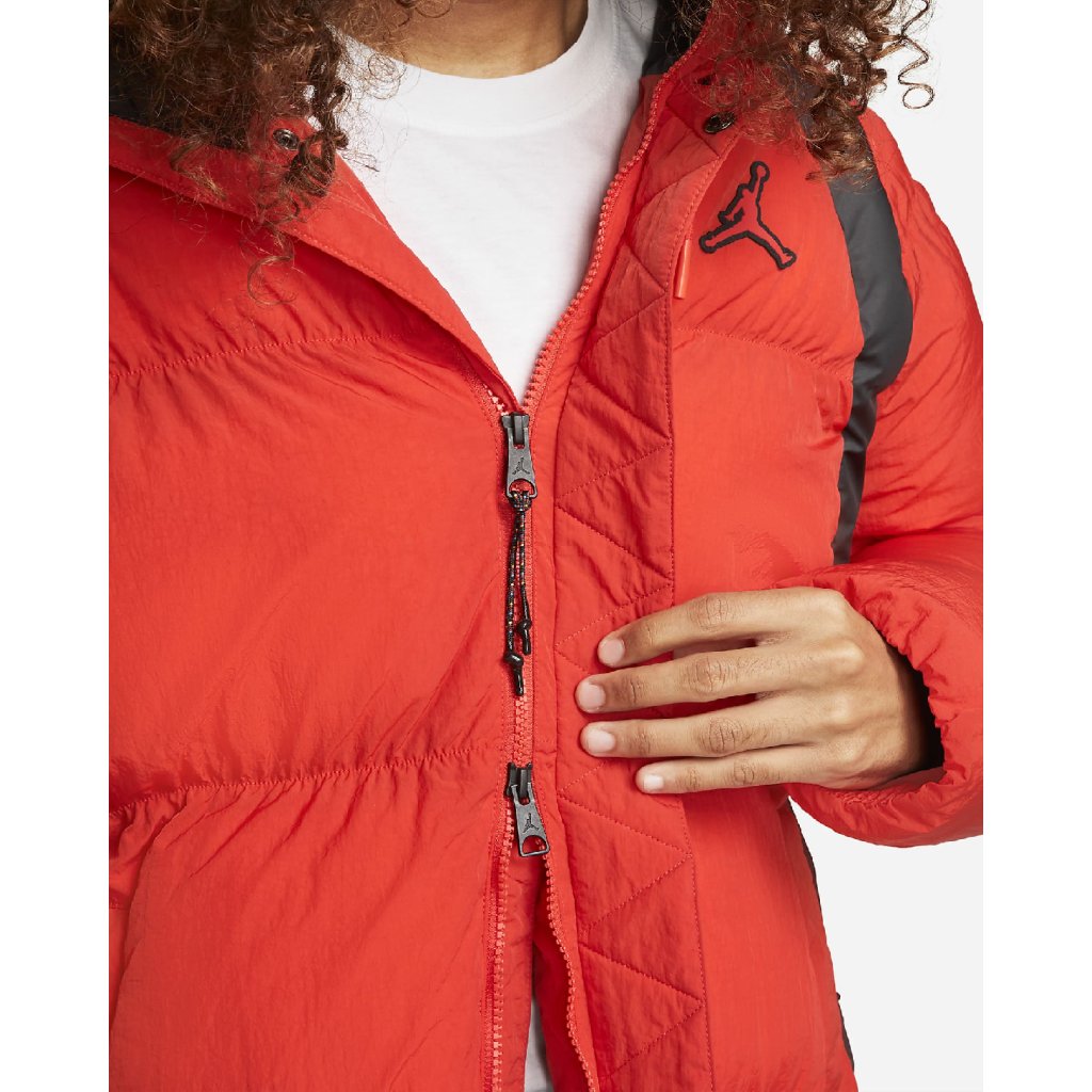 Oblečte se do chladu v bundě Jordan Essentials Puffer. Vnější vrstva a podšívka jsou vyrobeny z tkané, vodoodpudivé textilie a celá je zateplena nadýchanou syntetickou výplní.