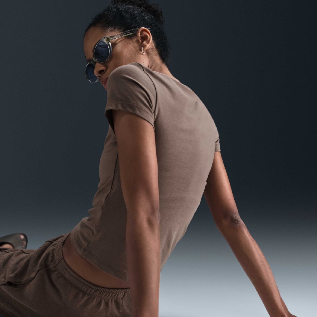 Dámské mírně zkrácené, úzké t -košile & nbsp; Nike Sportswear Chill Pletení W je univerzální a ideální pro každý den. Hladké tkaní je elastické a mírně tekoucí, takže košile je pohodlná a těsná.
