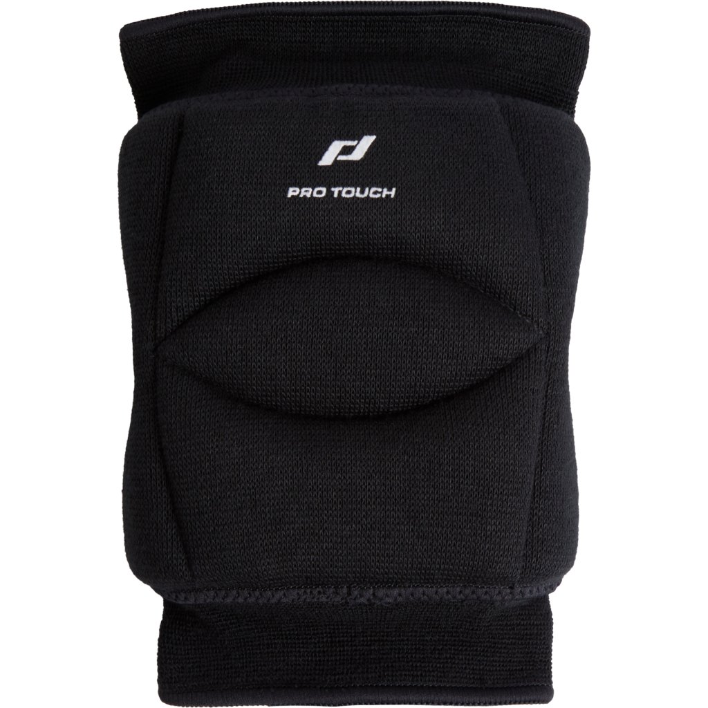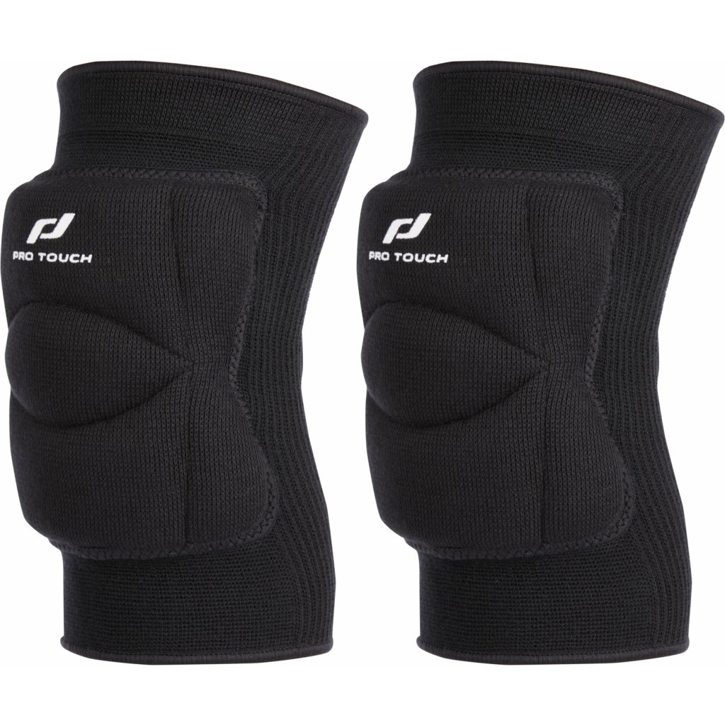 Pár chráničů kolen Pro Touch Knee Pads, které jsou anatomicky tvarované pro pohodlí a mají vyříznutý otvor v zadní části kolena pro lepší ergonomii.