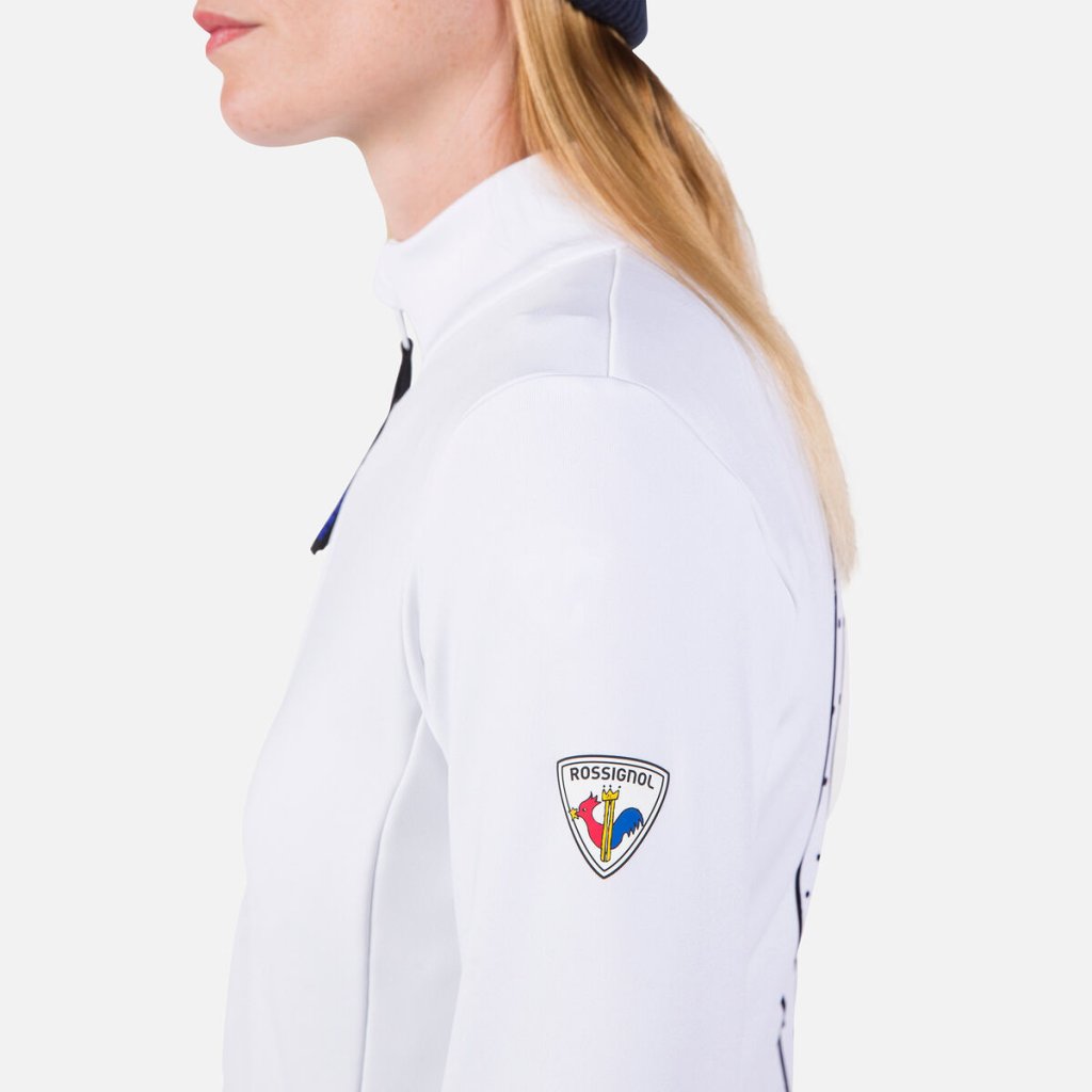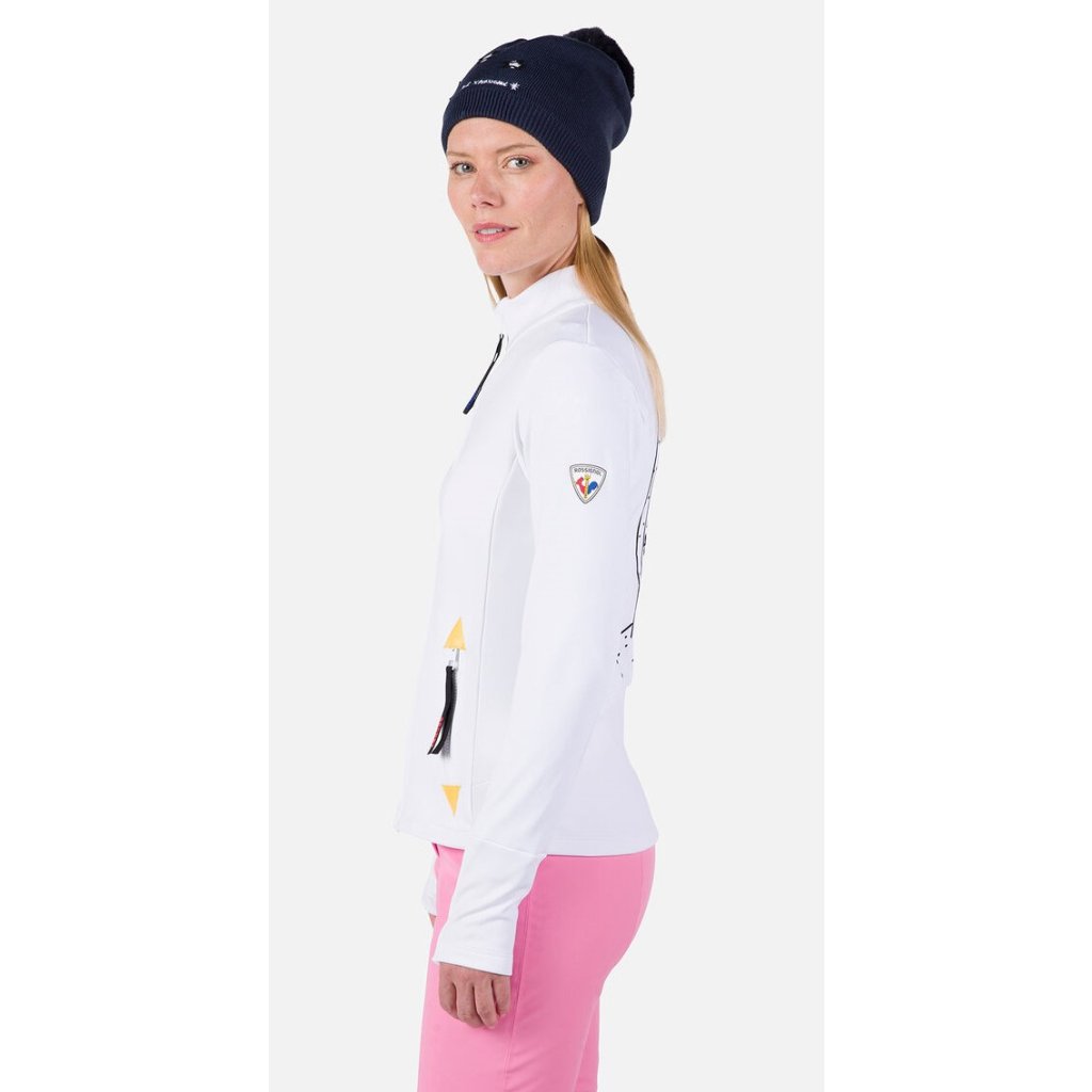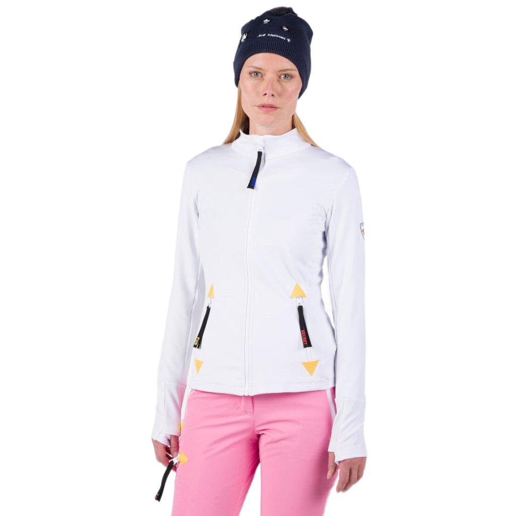 Lyžujte a objevujte v elegantním stylu JCC. Dámská bunda Rossignol JCC Climi Jacket W je ideální střední vrstva pro nošení samostatně nebo pod vrchní bundu s úzkým střihem, který kopíruje obrysy těla a navíc se zabudovaným strečem. Výrazné popové barvy a grafika na zádech spojují umění, módu a alpský život.