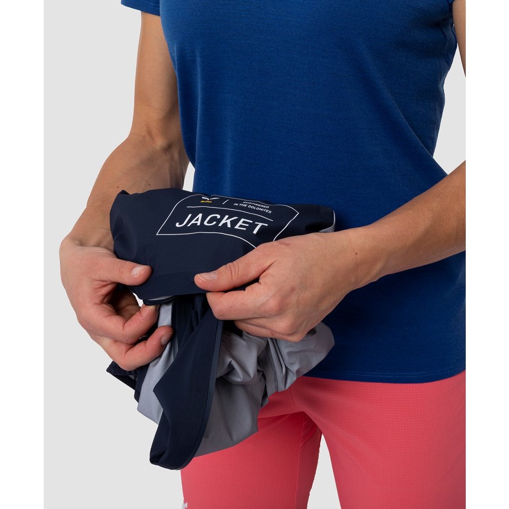 Dámská nepromokavá, větruodolná, prodyšná a lehce sbalitelná bunda Salewa Agner 2 PTX 3L Jacket W pro lezení. Lehká bunda Agner je dostatečně malá na to, aby se dala zavěsit na zadní stranu vašeho postroje nebo schovat do batohu, dokud ji nebudete...