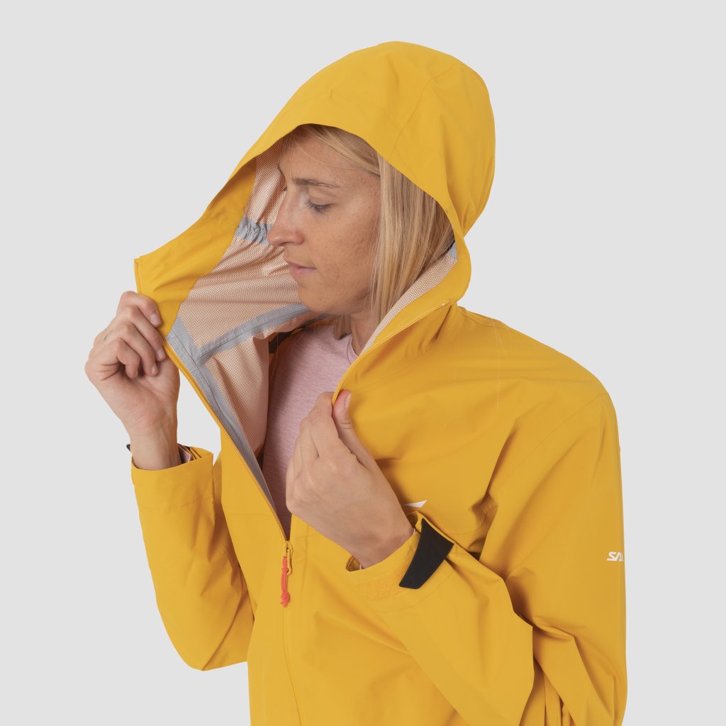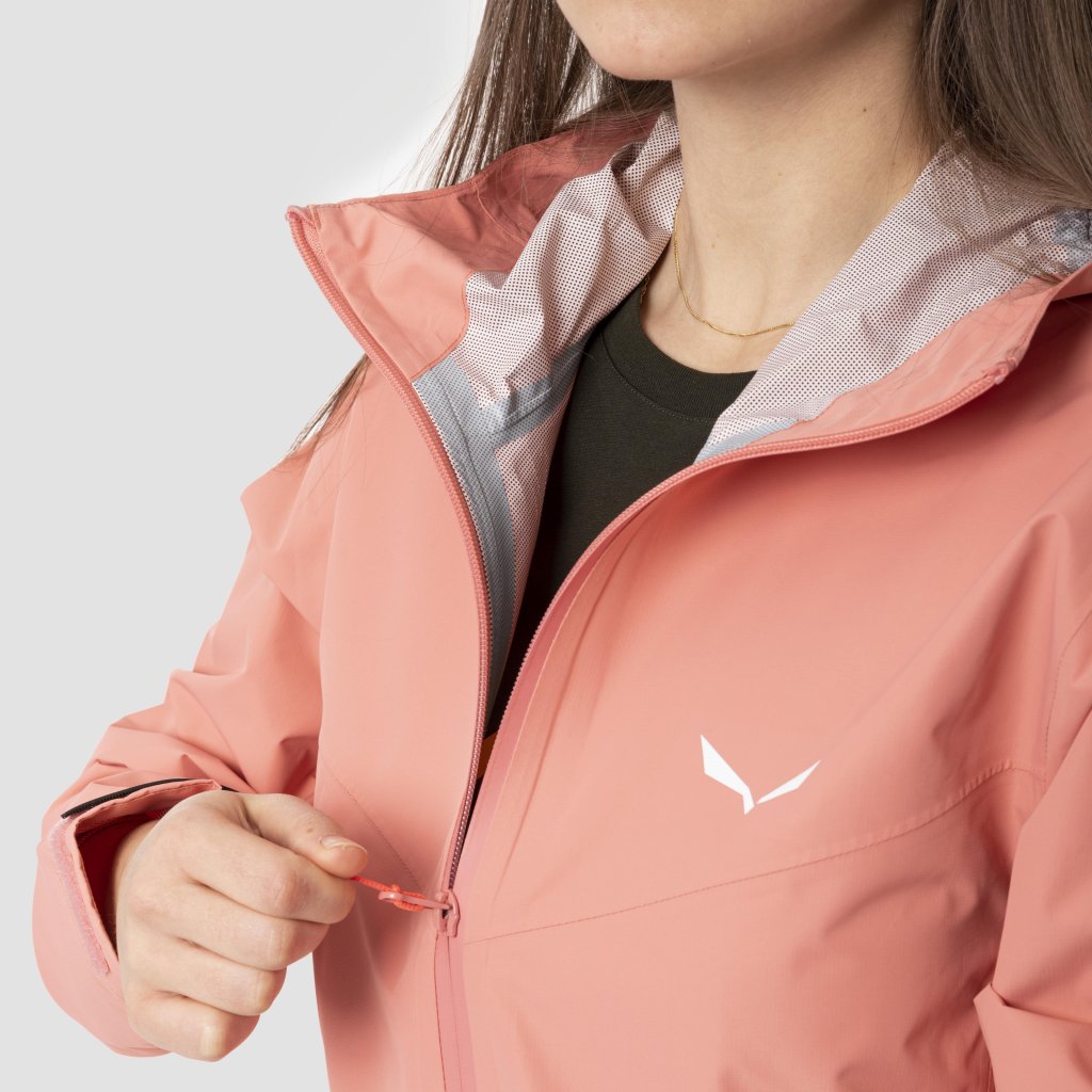 Dámská lehká, nepromokavá a prodyšná bunda Salee Puez 2.5L PTX Jacket W z 2,5-vrstvého shellu pro vysokohorskou turistiku a outdoor. Hledáte lehkou bundu chránící před povětrnostními vlivy, která se sbalí do malého ? Půz 2.5L PTX Jacket je vyrobena z naší patentované ripstopové membrány Powertex s 57% recyklovaného obsahu. Poskytuje spolehlivé hodnocení vodotěsnosti (vodní sloupec), které odolá tlaku vody až do 10 000 mm. Pokud jde o prodyšnost, výkon je rovněž působivý (10 000 g/m²/24h), abyste se cítili pohodlně i při intenzivnějším používání. Navržena pro funkční jednoduchost pro vysokohorskou turistiku a trekking, má plně nepromokavou technickou úpravu s plně utěsněnými švy a voděodolnými zipy vpředu a na kapsách, které jsou schopny odolat nepředvídatelným podmínkám. Kromě toho je tato bunda vyrobena tak, aby byla velmi lehká.