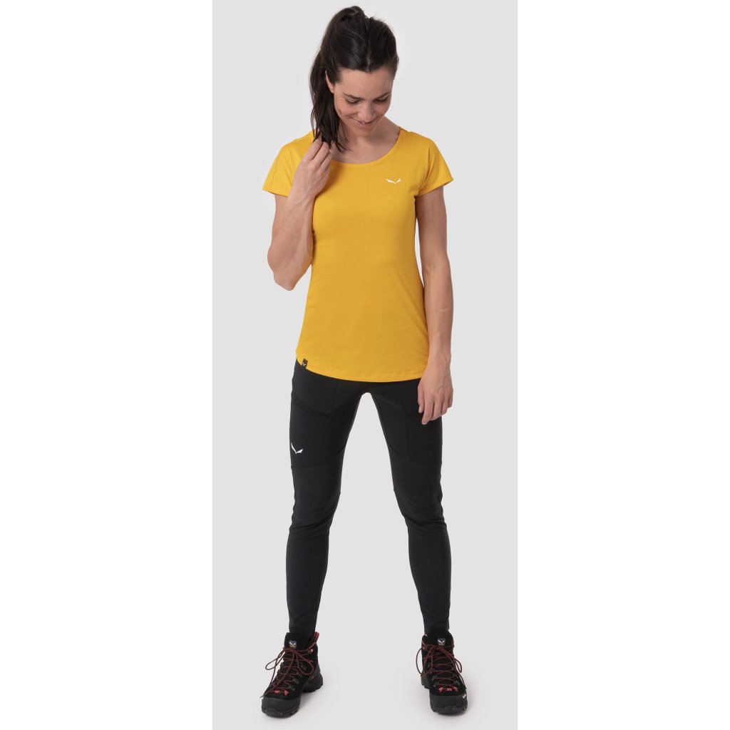 Dámské funkční triko Salewa Puez Melange Dry T-Shirt W z materiálu Dry'ton pro horké pěší túry do hor. Jeho prodyšná, obousměrně strečová, funkční polyesterová tkanina rychle odvádí vlhkost od pokožky, aby se předešlo přehřátí nebo ochlazení...