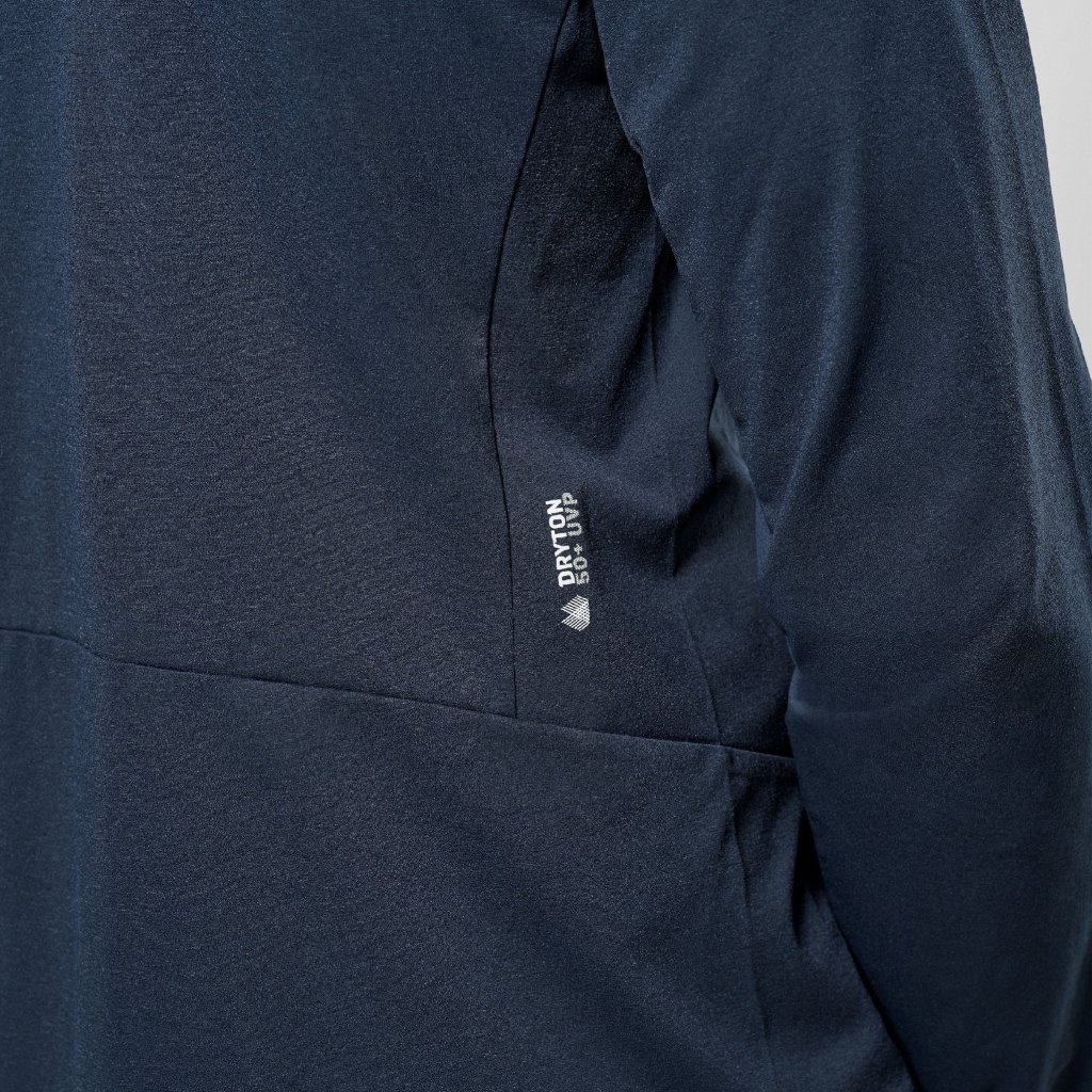 Pánské elegantní letní mikinu se Salowou P Díky tomu je lehký, prodyšný a rychlý sušení. Jeho ochrana UPF 50+ účinně chrání vaši pokožku před sluncem blokující škodlivé UV paprsky i v nejnepříznivějších dnech nebo vyšších v horách. Pod helmou je také vhodná těsná kapuce s měkkým elastickým lemováním. S integrovanými palci. V normálním řezu, který je vzdušný, ale ne těsný.
