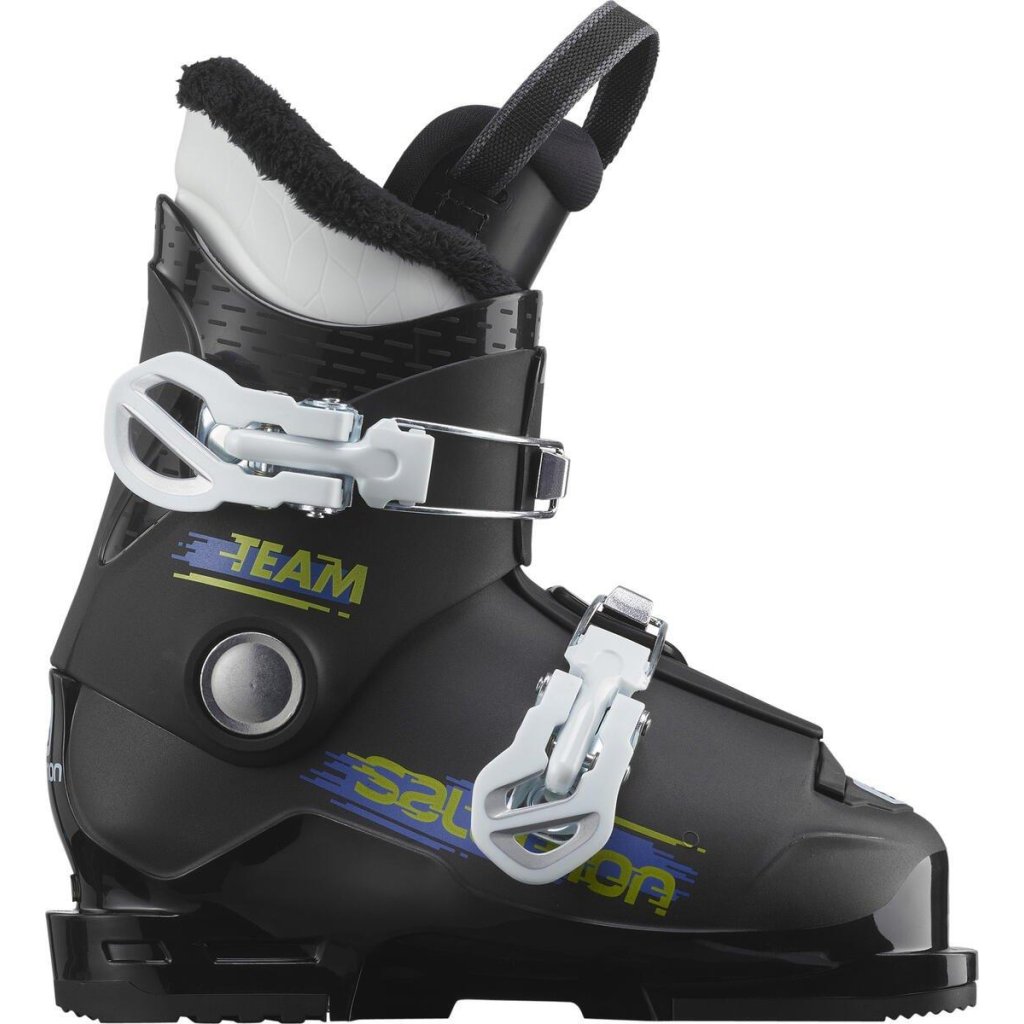 Dětské lyžařské boty Salomon Team T2 kombinují tenkou skořepinu a design se 2 přezkami pro pohodlí a oversized Pivot pro snadné zatáčení.