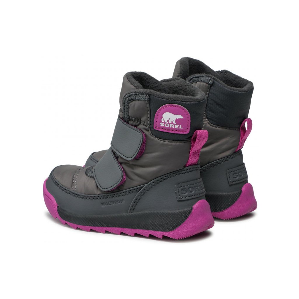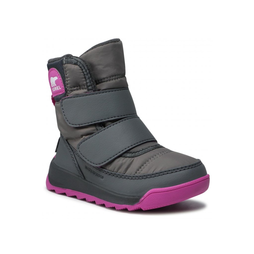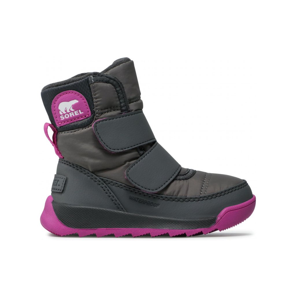 Dětské sněhule Sorel Whitney II Strap mají jemně zateplený model vyrobený spojením textilu a ekologické kůže.