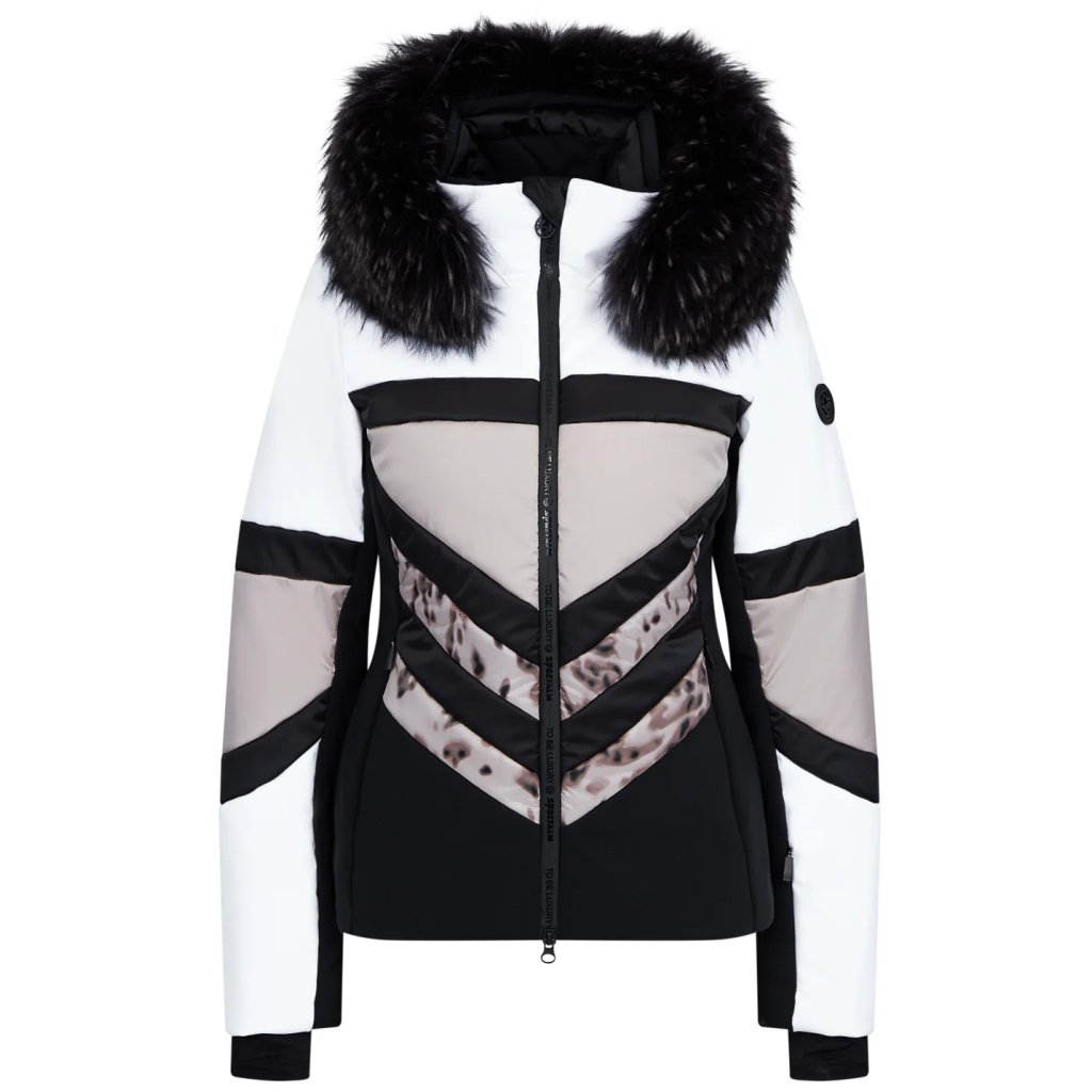 Díky mnoha pruhovaným vložkám ve světlých a tmavých kontrastech je bunda skutečným lákadlem pro oči. Dvě skryté kapsy na zip jsou zakomponovány do dělícího švu vpředu. Kapuci s kožešinovými pruhy lze nastavit na šířku pomocí šňůrky a má integr...