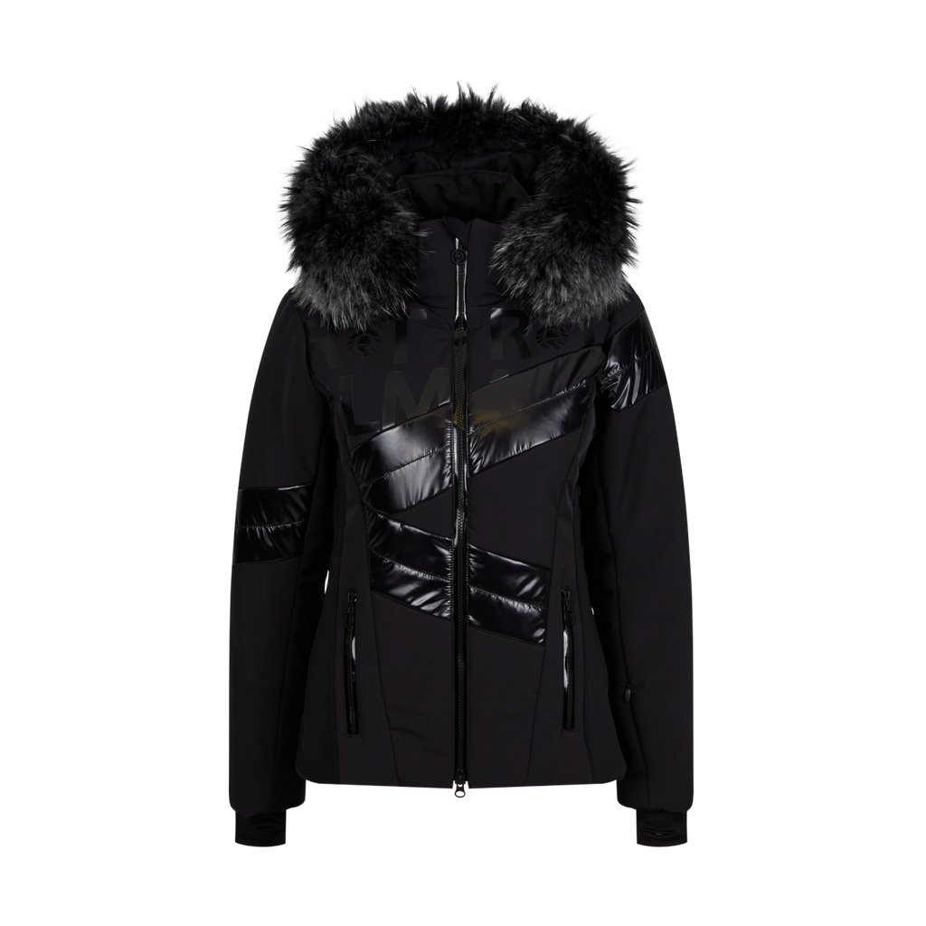 Dámská lyžařská bunda Sportalm Yasmina s kapucí a kožešinou. Přední a zadní část z kvalitní sportovní látky jsou spojeny s bočními panely a vnitřními manžetami z elastického materiálu. To nejen zvyšuje pohodlí, ale také zajišťuje štíhlou postavu.