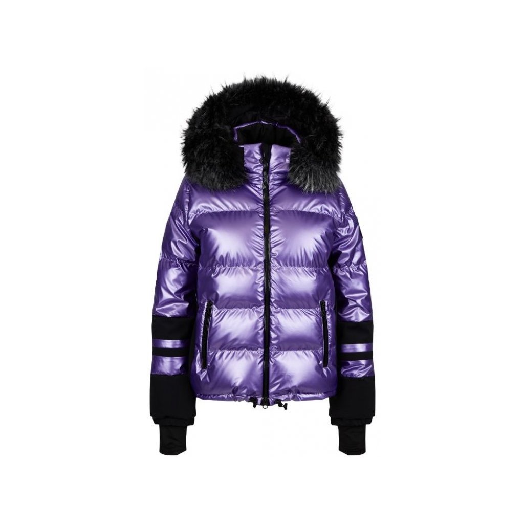 Dámská péřová bunda Sportalm Yeah v nápadné fialovo-metalické barvě a horizontálním prošíváním je jako stvořená do tuhé zimy. Moderní a přesné linie střihu bundy krásně vykreslují ženskou postavu. Bunda nejen přitahuje pozornost svým nápadným propracovaným designem, ale také splňuje všechny náročné technické parametry pro dokonalý pocit tepla a komfortu při běžném nošení či lyžování. Objemný nadýchaný vzhled podtrhují elastické manžety (se zipovým rozparkem), stojatý límec a mohutná kapuce s kožešinou. Bunda má systém Recco a její povrch je vodoodpudivý. Nacházejí se na ní dvě přední kapsy na zip.