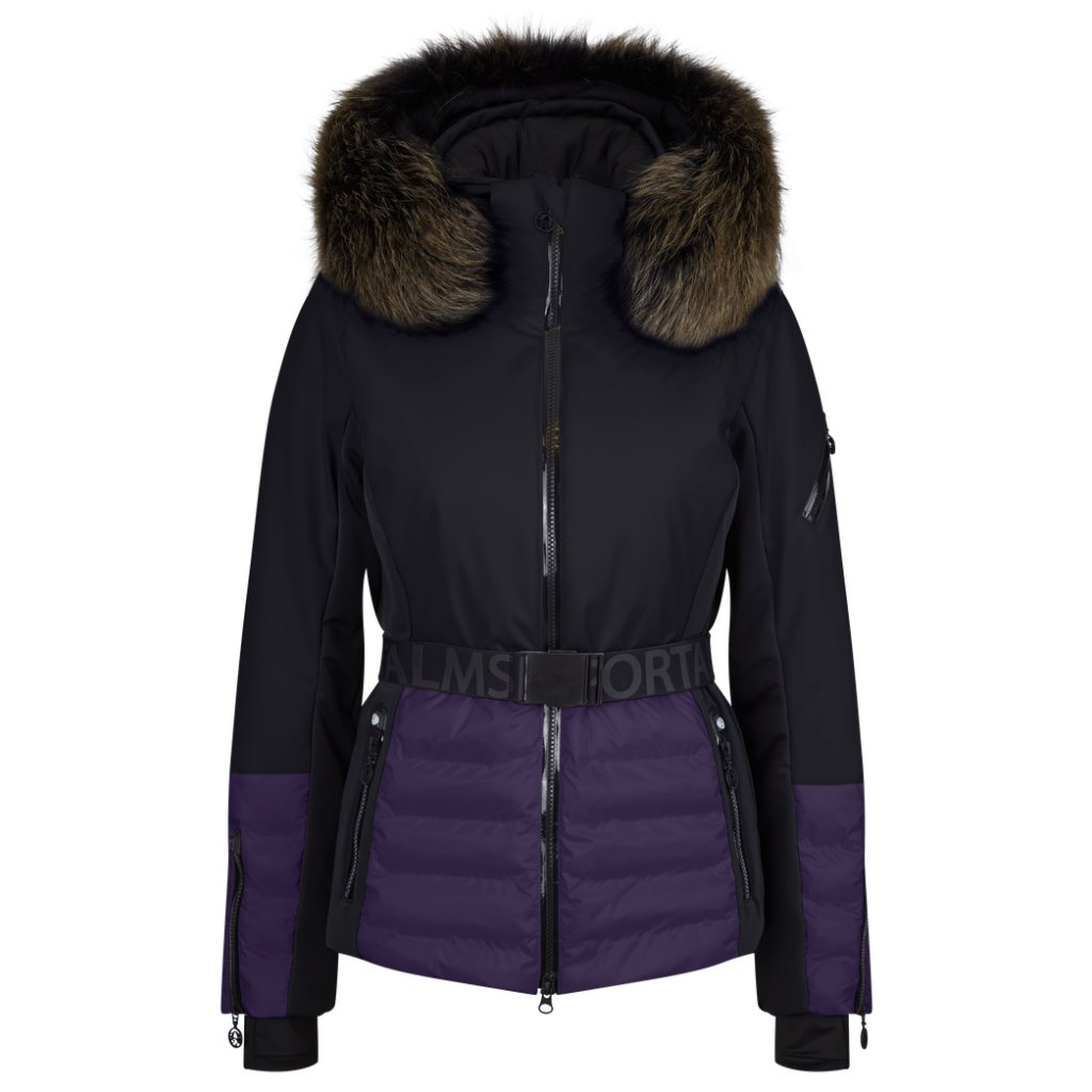 Dámská bunda Sportalm Yusti White dámská lyžařská bunda s kapucí a kožešinou pravá kožešina finský mýval odepínací kapuce i kožešina dvě přední a jedna kapsa na rukávu na zip boční vložky a spodní část předloktí z černé lyžařské