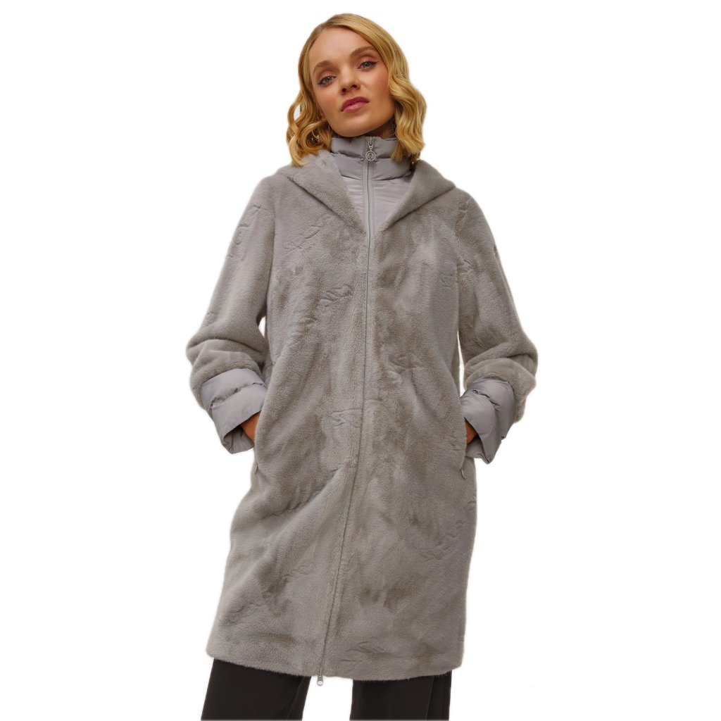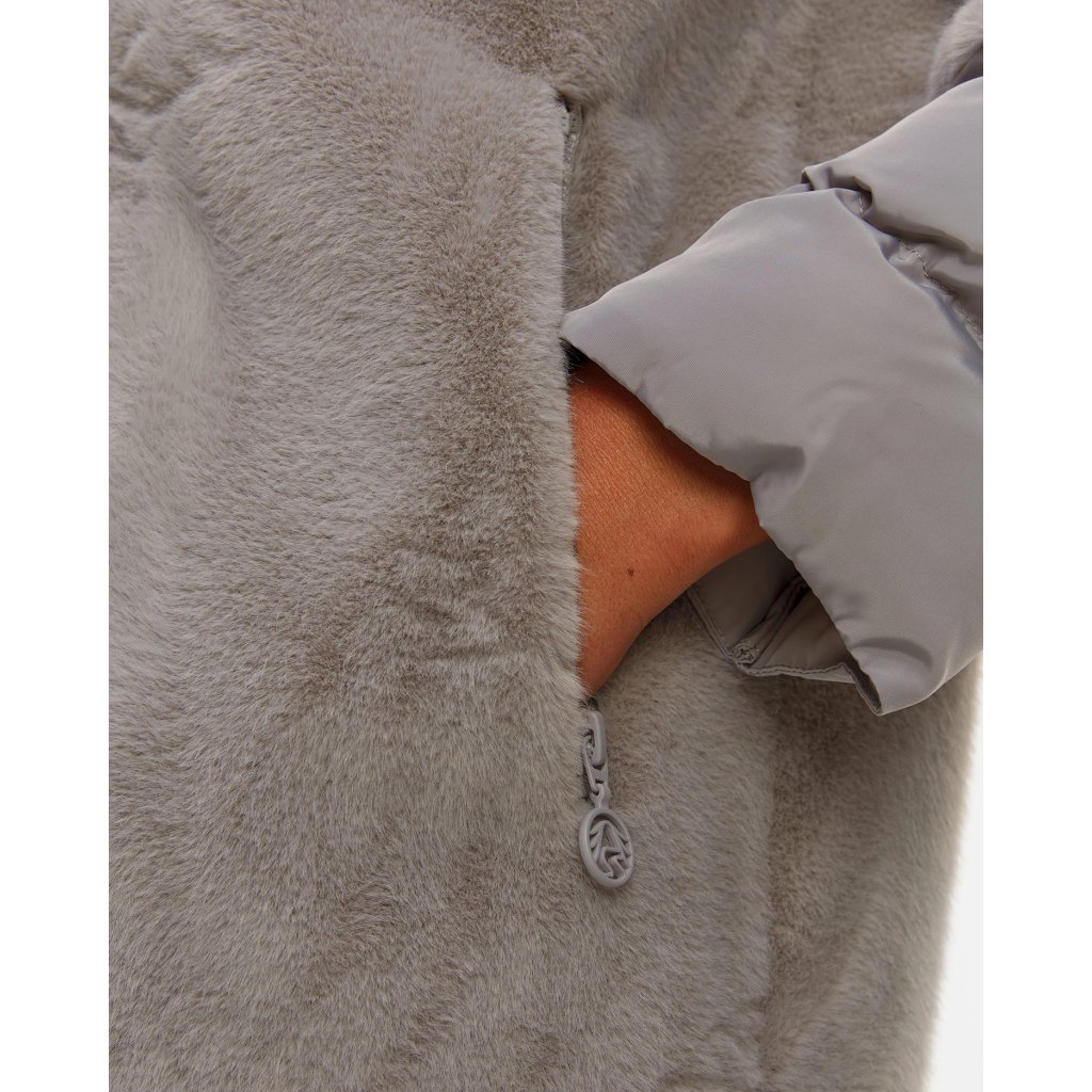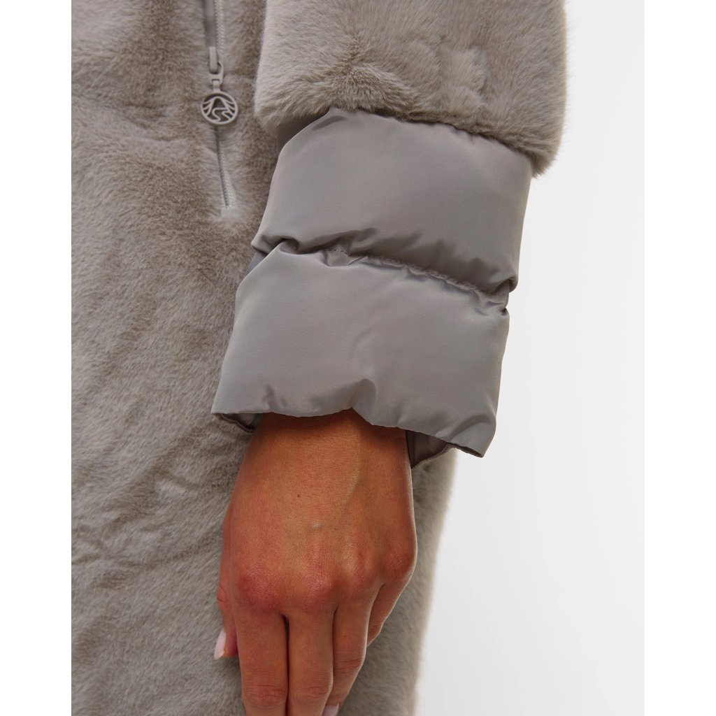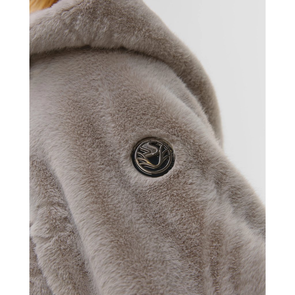 SPORTÁLNÍ DENTRAGHT COAT s délkou kolena kombinuje měkkou plyšovou texturu s funkčními nylonovými prvky. Minimalistická linie kapuce zdůrazňuje moderní eleganci a tepelné pohodlí jde ruku v ruce se sofistikovanými detaily.