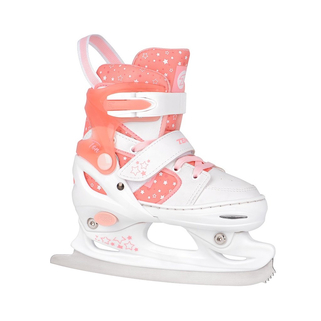 Dívčí lední brusle určené pro rekreační sporty, tedy začátečníky i pokročilé bruslaře. Měkká, rychleschnoucí podšívka zajišťuje pohodlí dětských nožiček. Manžeta je vyrobena z PE, který si zachovává svou houževnatost i při teplotách kolem -25 °C. Pevný střih zajišťuje šněrování, nártový pásek na suchý zip a oboustranná přezka s pojistkou proti nechtěnému rozepnutí. Vnitřní bandáž boty je velmi pohodlná a má výborné termoizolační vlastnosti. Brusle mají jednoduchý a pohodlný systém zvětšení velikosti pomocí tlačítka na boku rámu. Brusle lze nastavit na 4 velikosti. Novinkou je více ploché zakřivení čepele, které zajišťuje větší stabilitu pro začínající bruslaře.