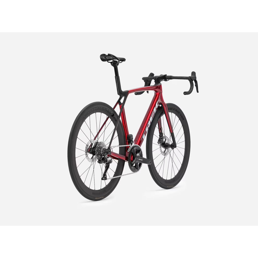 Madone SL 6 Gen 8 je lehké aerodynamické silniční kolo, které posouvá profesionální závodní technologii svého sourozence SLR na nižší cenový bod s dostupnějším rámem z vrstveného karbonu OCLV řady 500. Elektronické řazení Shimano 105 Di2 zajišťuje bleskurychlé řazení a spolu se slitinovými řídítky pomáhá držet cenu na nízké úrovni. Navíc je vybaven karbonovými koly, které zaručují nízkou hmotnost a špičkový výkon kola.