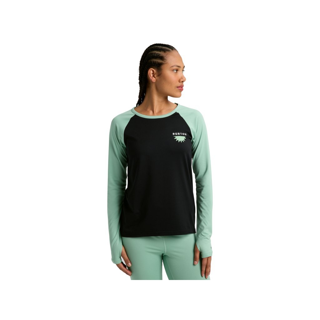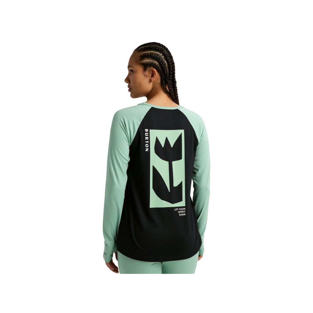 Burton Roadie Base Layer Tech Wmn Longsleeve je technická základní vrstva určená pro ženy, které jsou v zimě aktivní na sjezdovce i mimo ni. Je vyrobena z prodyšné tkaniny DRYRIDE Ultrawick Midweight 200 a kombinuje vysokou elasticitu, rychlý odvod vlhkosti a tepelný komfort. Díky střihu Slim Fit a technologii Stretch 360° poskytuje naprostou volnost pohybu a perfektně sedí. Model je vybaven plochými Softlock švy, které eliminují riziko tření, zatímco otvory pro palce zvyšují funkčnost při vrstvení. Antimikrobiální úprava schválená organizací Bluesign® účinně snižuje zápach a použití certifikovaných materiálů Bluesign® minimalizuje dopad výroby na životní prostředí. Je to spolehlivý základ pro jakýkoli zimní styling.