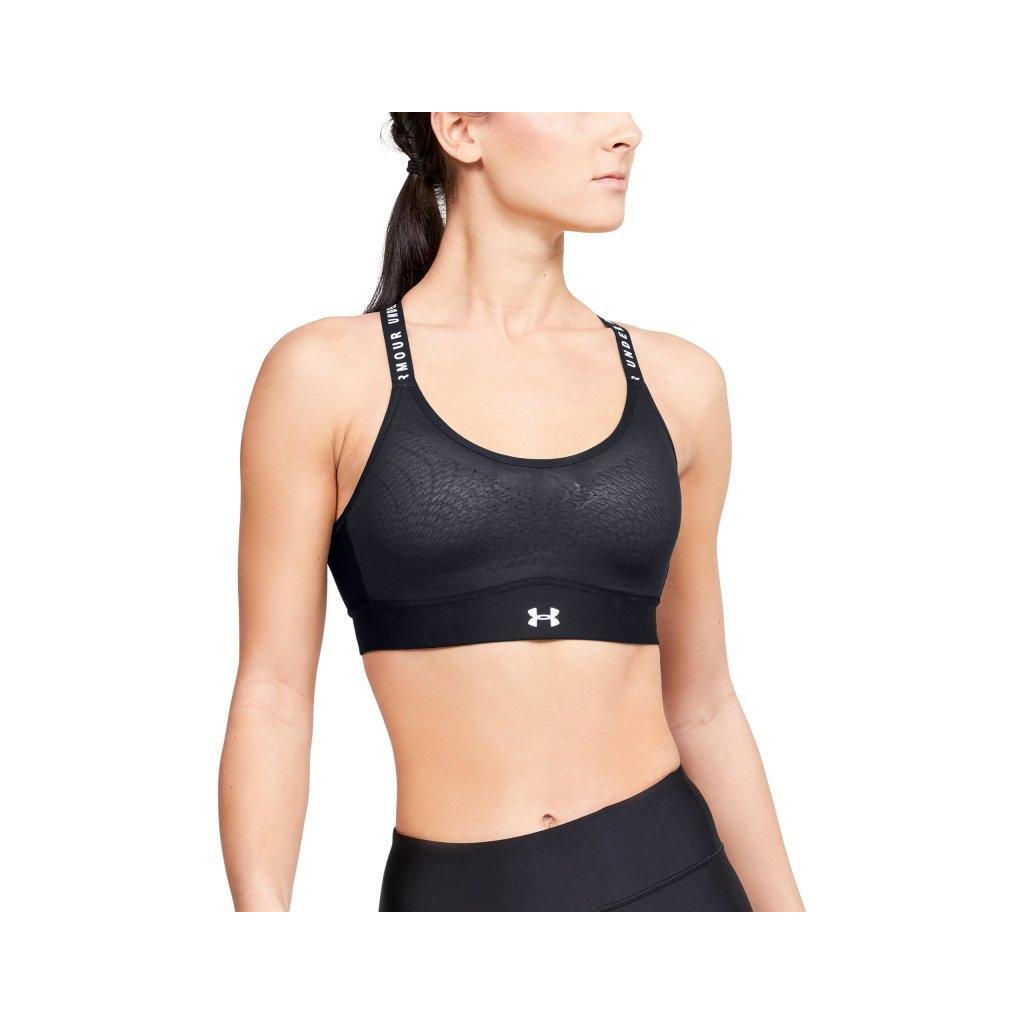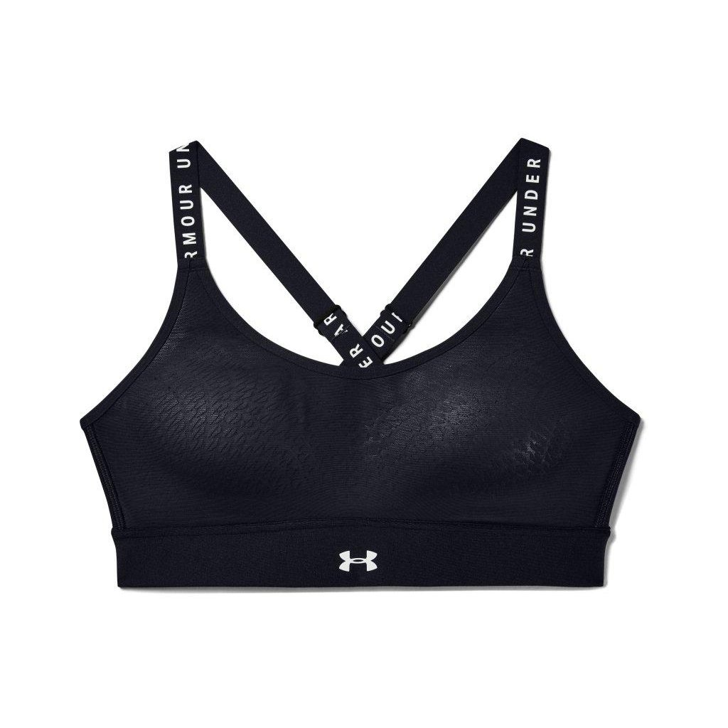 Tréninková podprsenka značky Under Armour Infinity Covered Low. Podrpsenka na sport pro všechny aktivní dámy! Poskytuje střední oporu pro aktivity jako jízda na kole, box nebo posilování. Vyrobená z originálního materiálu HeatGear je tato sportovní podprsenka mimořádně příjemná a zajišťuje spolehlivou oporu. Sportovní podprsenka se lehce a poholdně obléká díky klasickému háčkovému zapínání na zadní straně. Široký spodní lem má na sobě maličké logo značky a příjemně obepne tělo. Použité mesh panely v konstrukci zajistí extra ventilaci. Celoplošná výztuž zajistí ideální krytí. Ramínka jsou nastavitelná a lze je přizpůsobit na dva způsoby - překřížená nebo klasická a mají na sobě grafický potisk s nápisy značky Under armour. Použitý materiál odvádí vlhkost a velmi rychle schne.